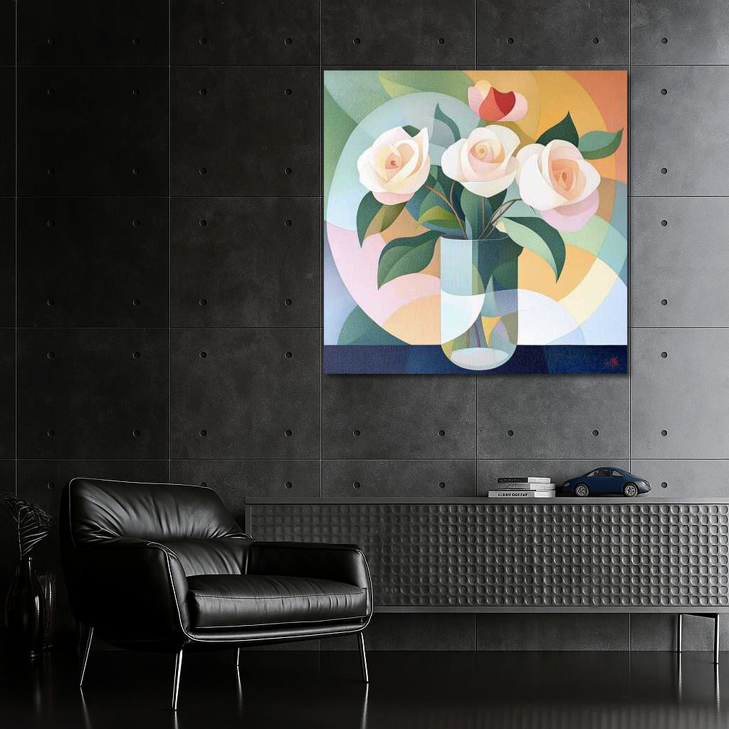 Modern Rose Bouquet in Vase: Delicate Flowers for Interior Wall Art