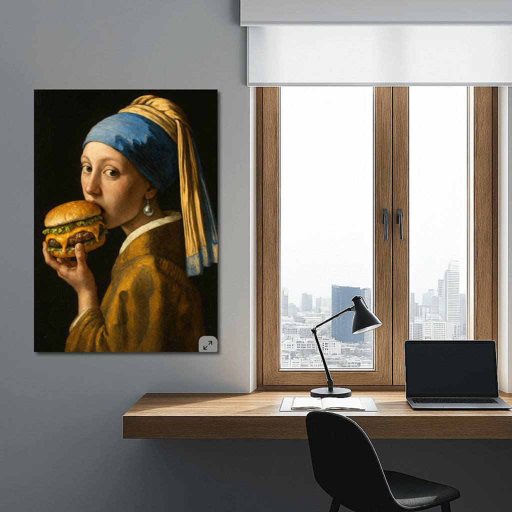 Classic meets fast food in this funny painting. Add humor to your interior with this wall art! See more from the collection: Humor Art