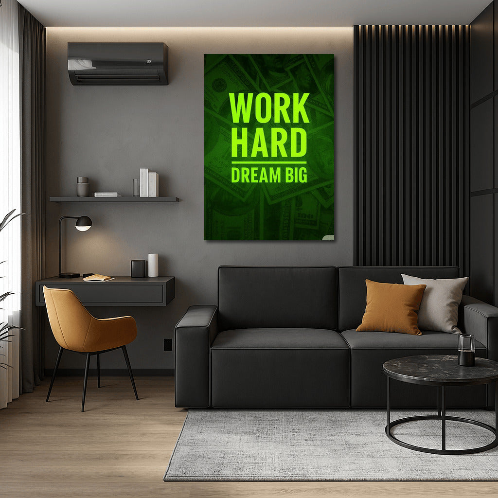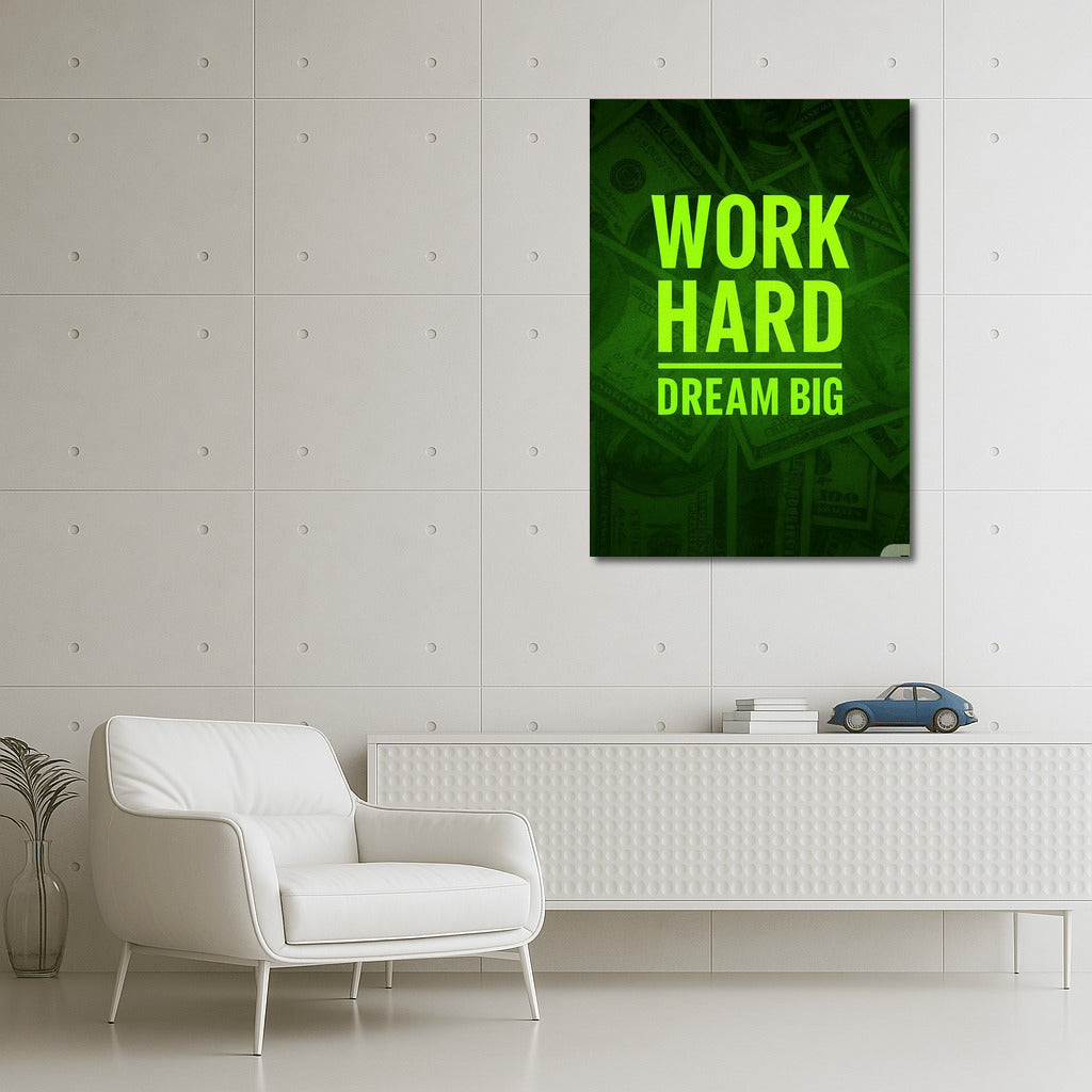 Inspiring Success Wall Art: Work Hard, Dream Big. A vibrant poster for those who strive for the top. See more from the collection: Money Art