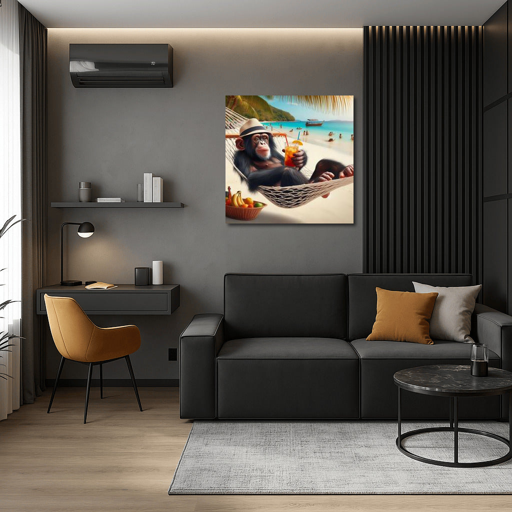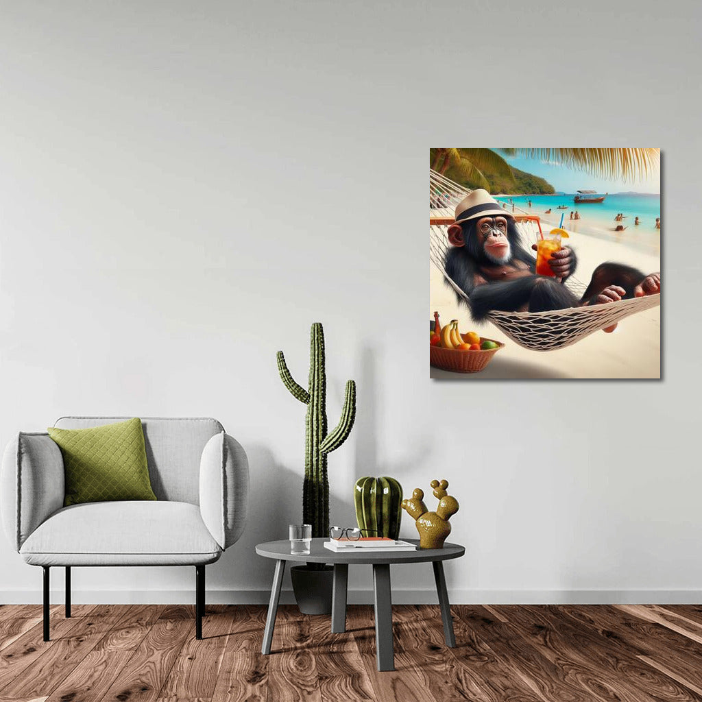 Monkey in a Sunbed: Tropical Relaxation with a Cocktail Wall Art
