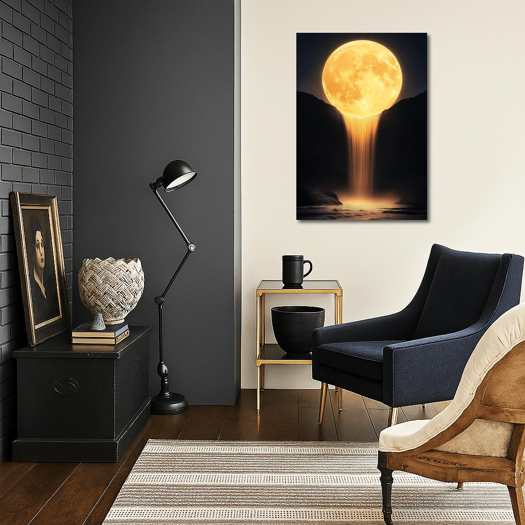 Moon Poster: Shining Waterfall of Moon in Dark Night. Incredible Wall Art for Dreamers. See more from the collection: Mixed Wall Art