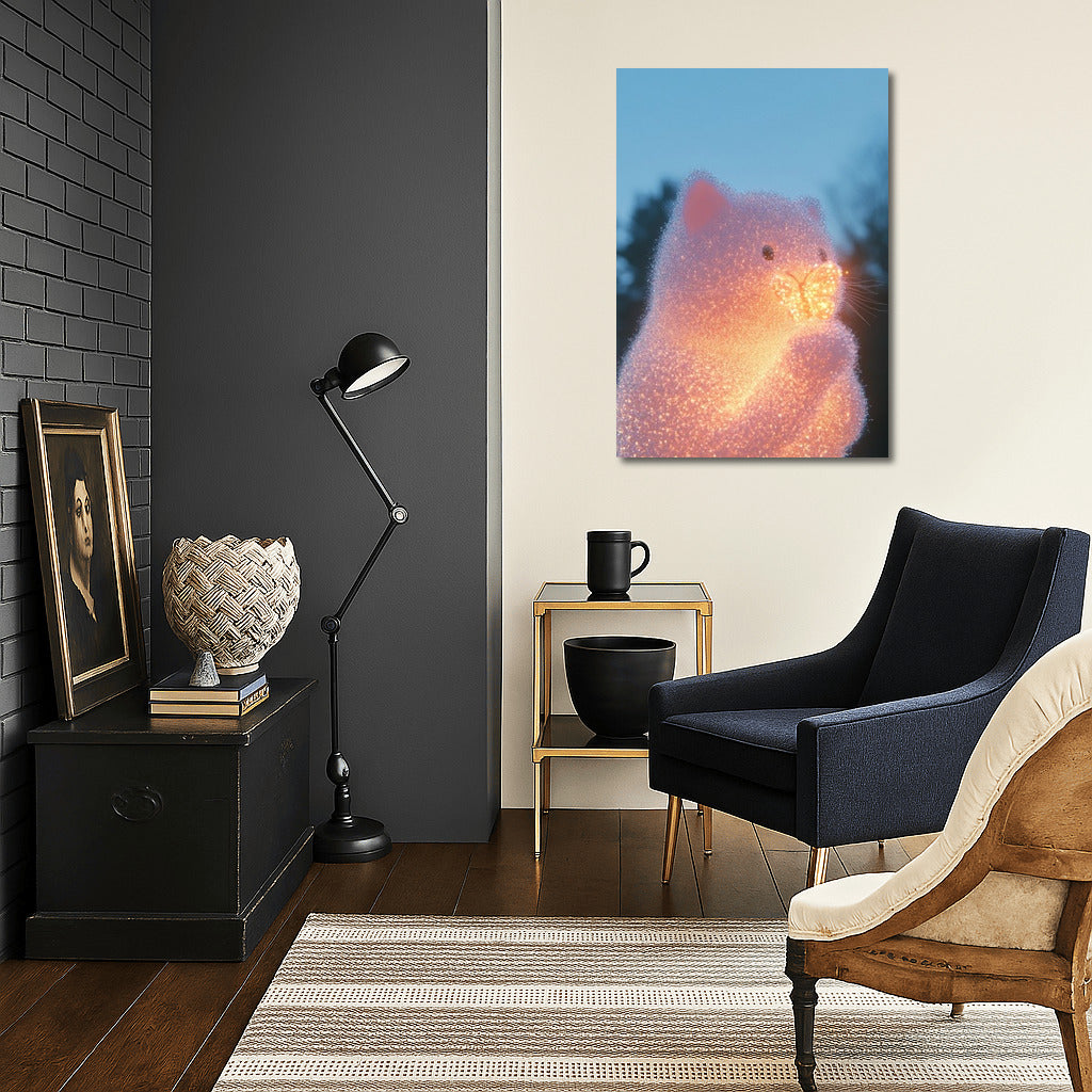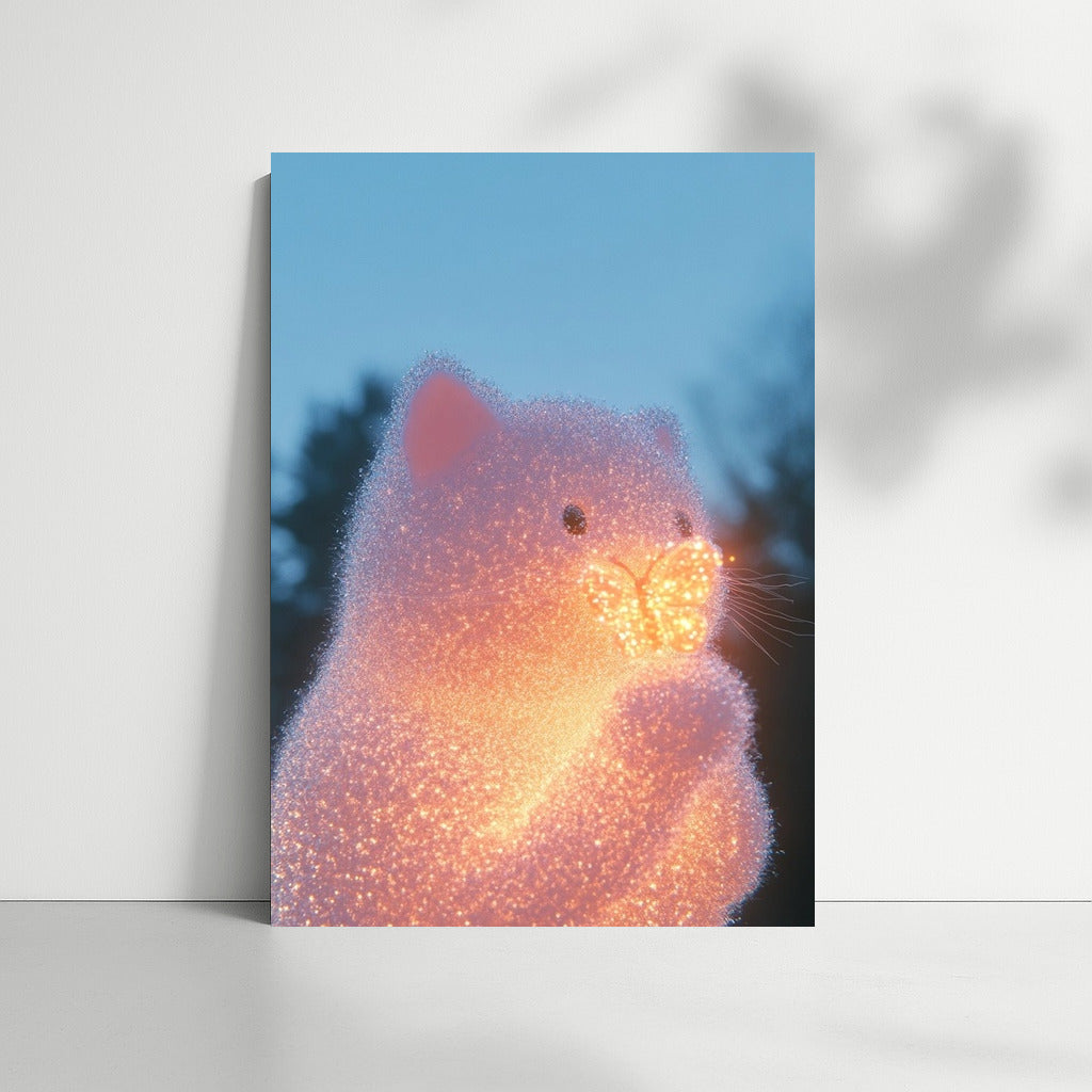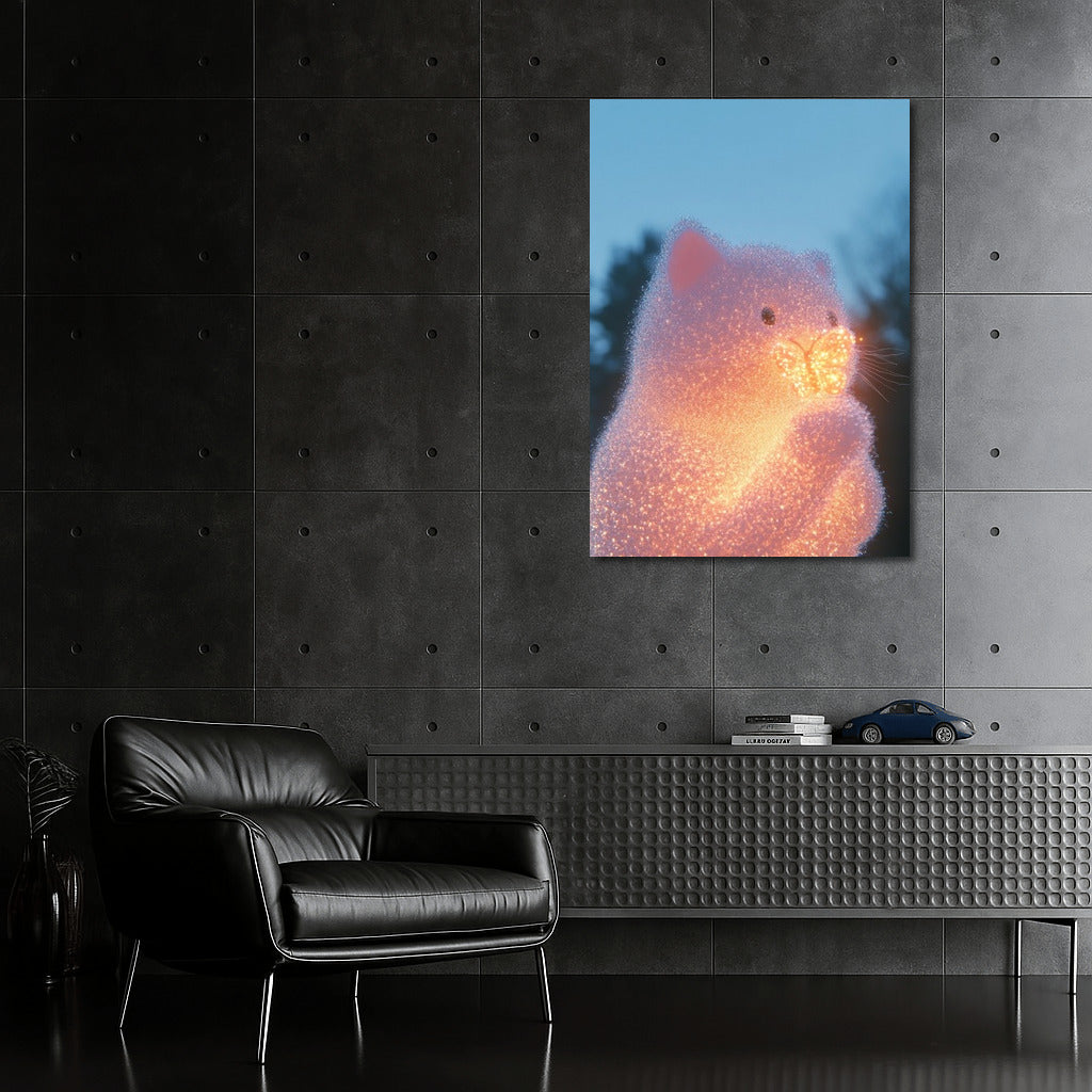 Glowing cat and butterfly in the glow of the evening sky. This poster will add magic and coziness to your interior. See more from the collection: Mixed Wall Art