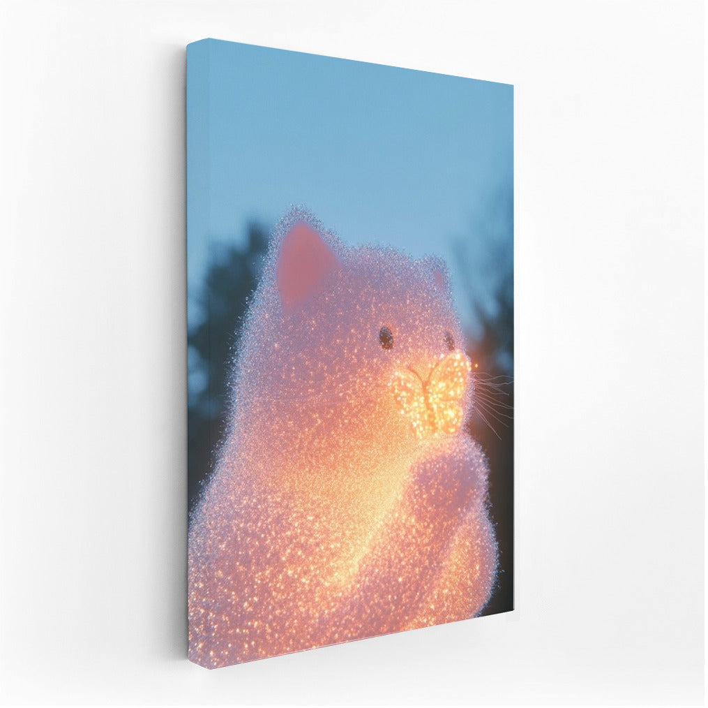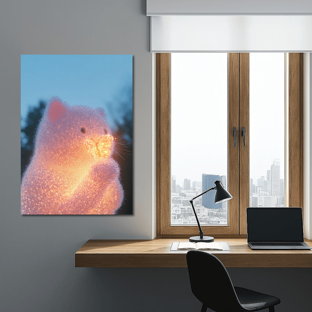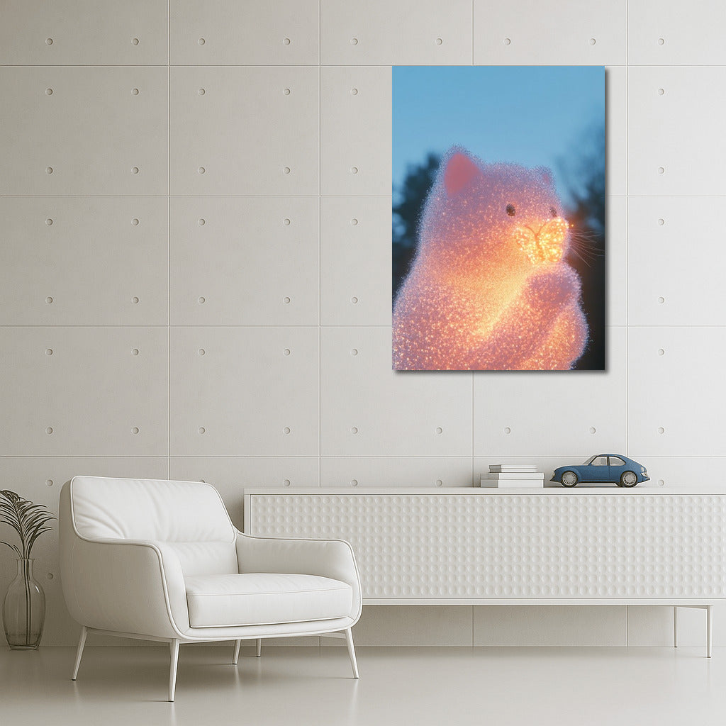 Glowing cat and butterfly in the glow of the evening sky. This poster will add magic and coziness to your interior. See more from the collection: Mixed Wall Art