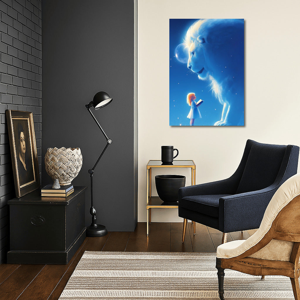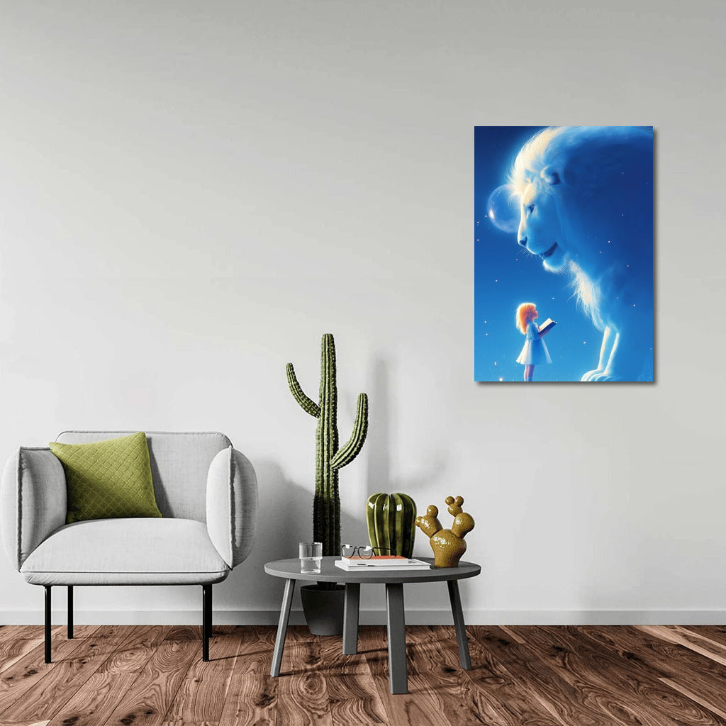 Mysterious meeting in the night: a girl and a fabulous lion under the moon. Add magic to the interior with this amazing wall art! See more from the collection: Cartoon Art
