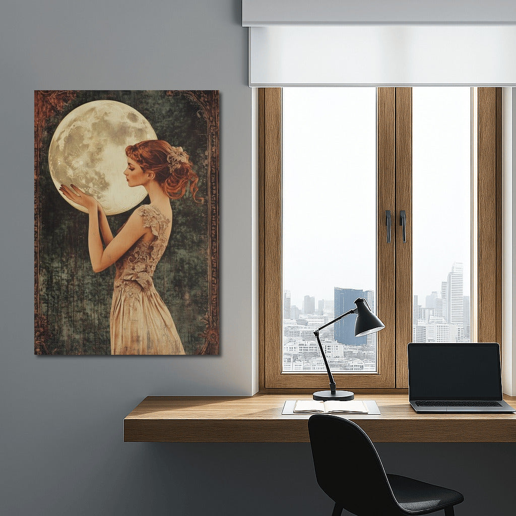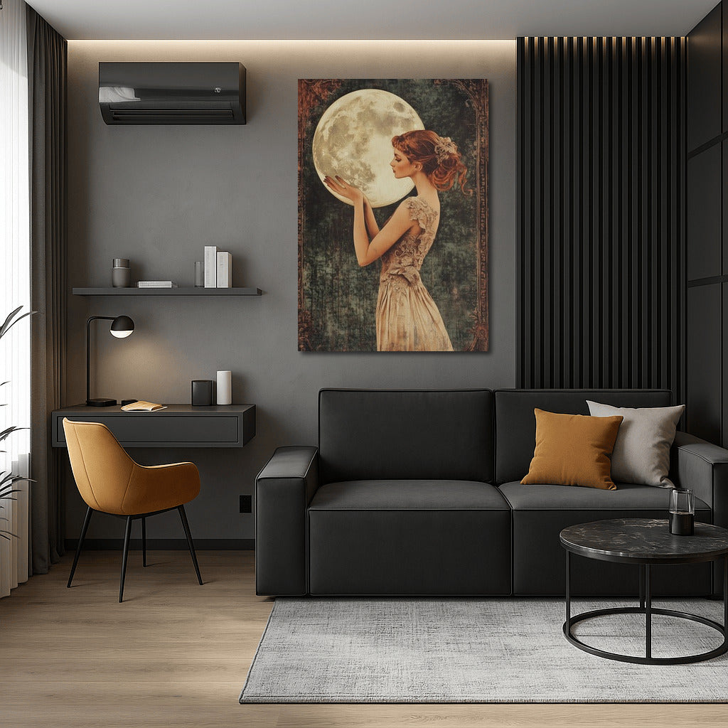 Dive into a dream with a poster: a mysterious figure holding the moon creates an atmosphere of magic for your space. ✨? See more from the collection: Mixed Wall Art