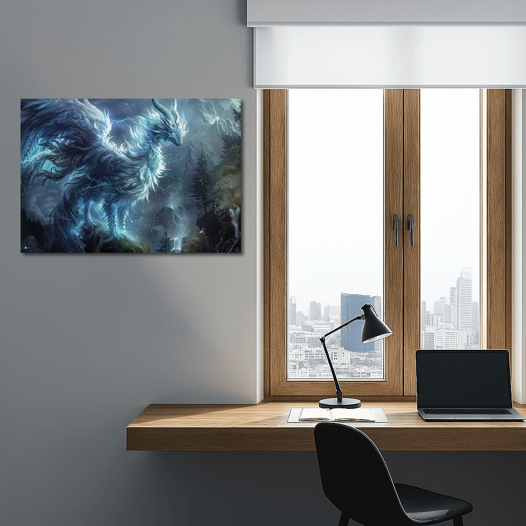 Dive into a fantasy world with this painting: a majestic creature against the moon. Perfect wall art for dreamers! See more from the collection: Fantasy Art