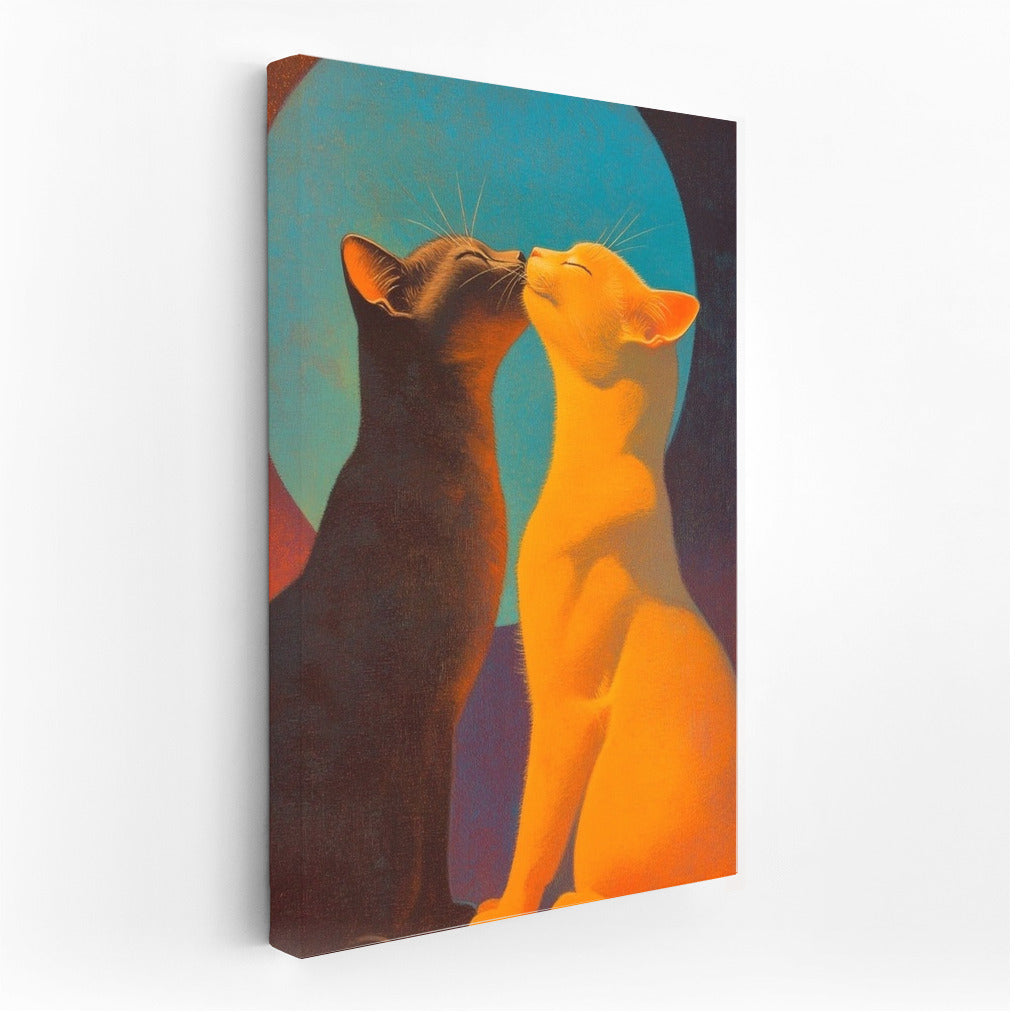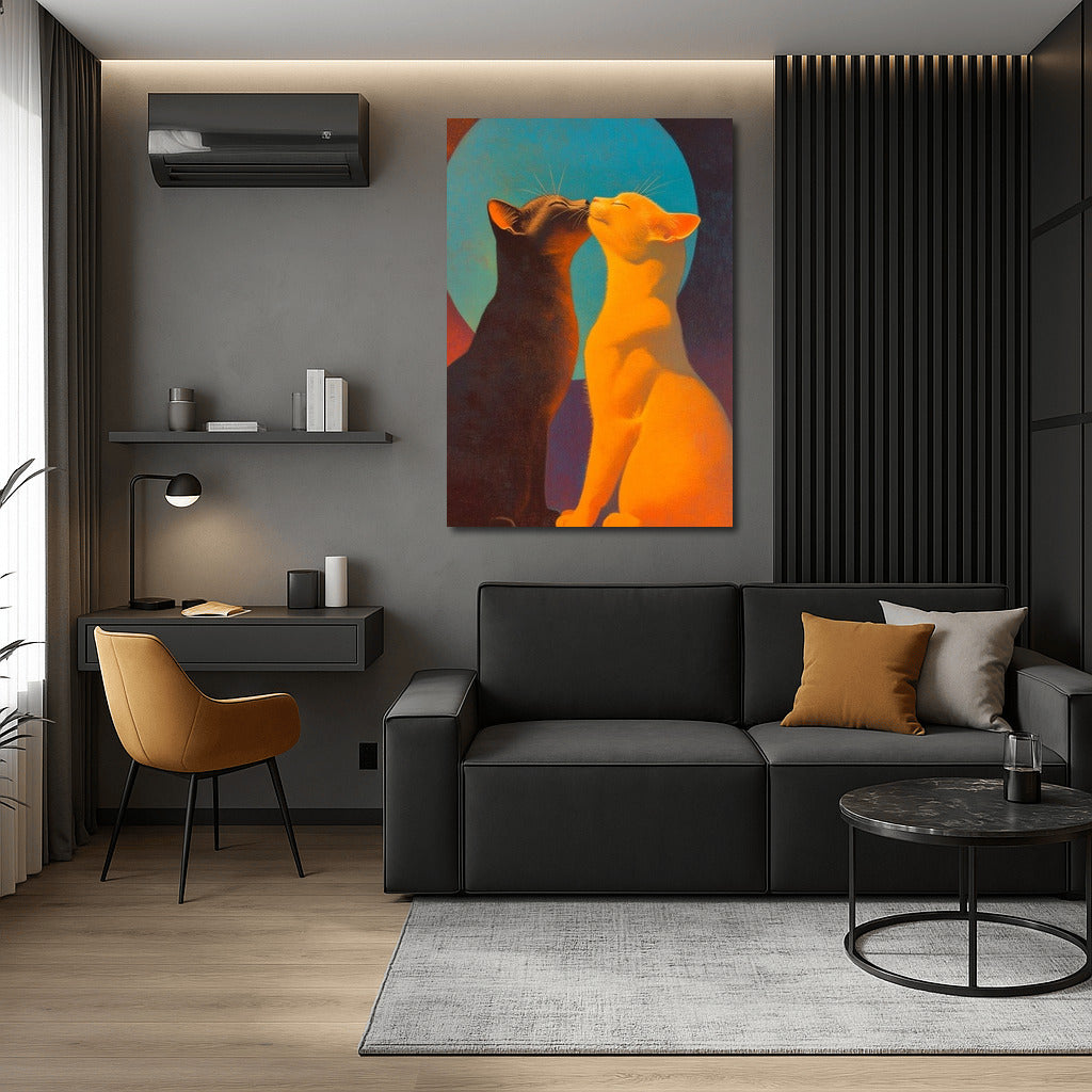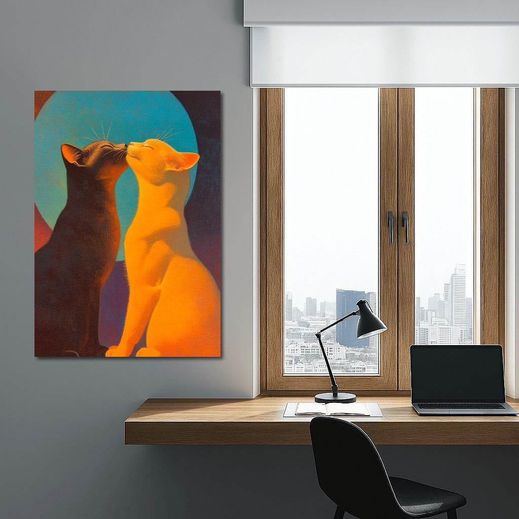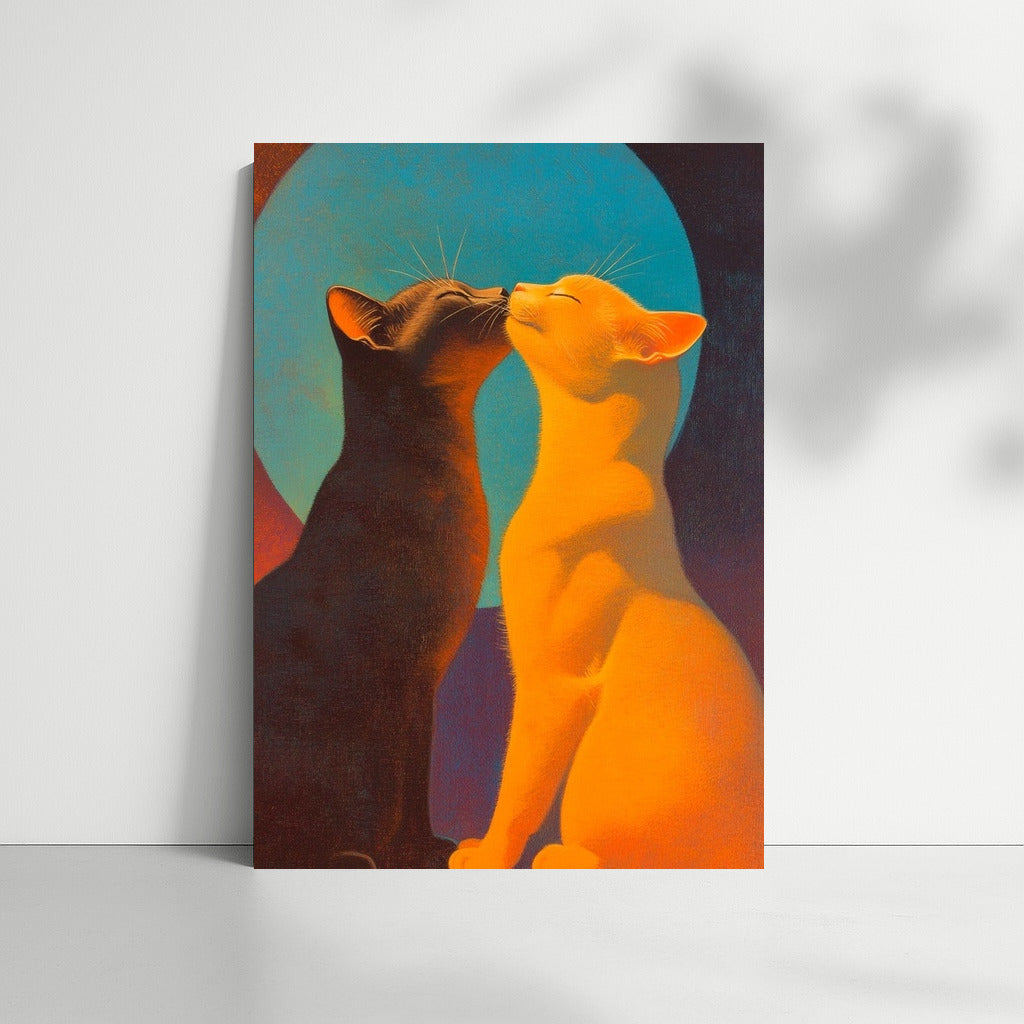 Two mysterious cats in the moonlight. This painting is a perfect poster to create a cozy atmosphere with a touch of magic. See more from the collection: Animals Art