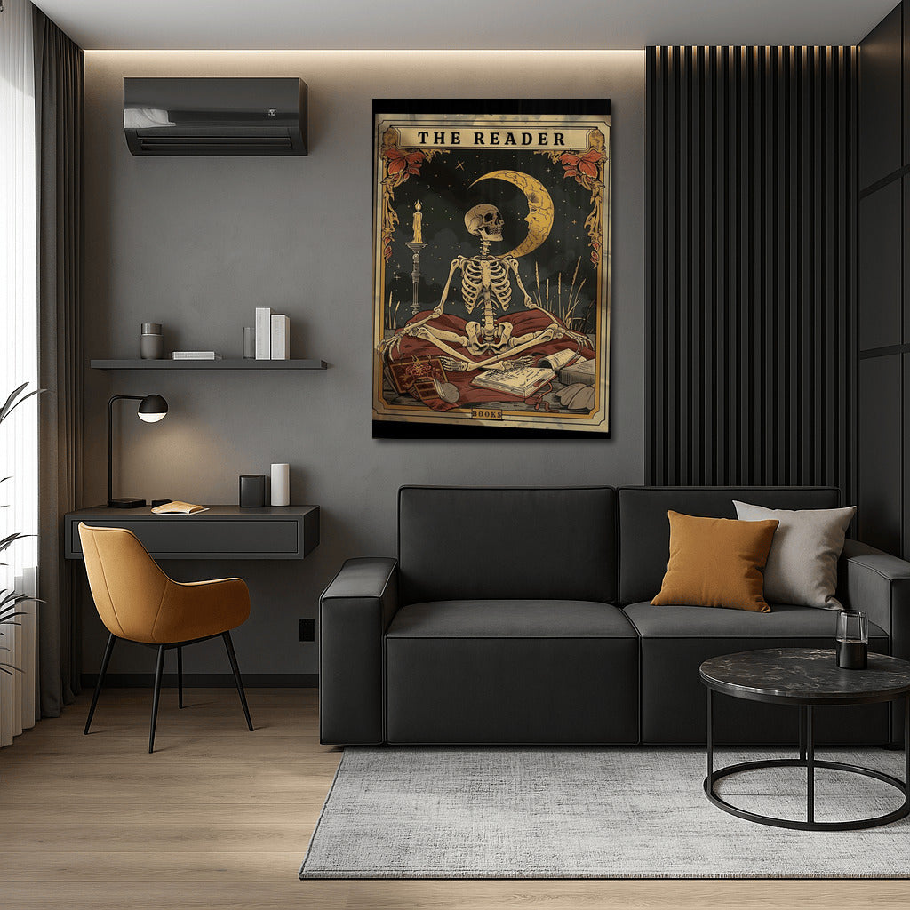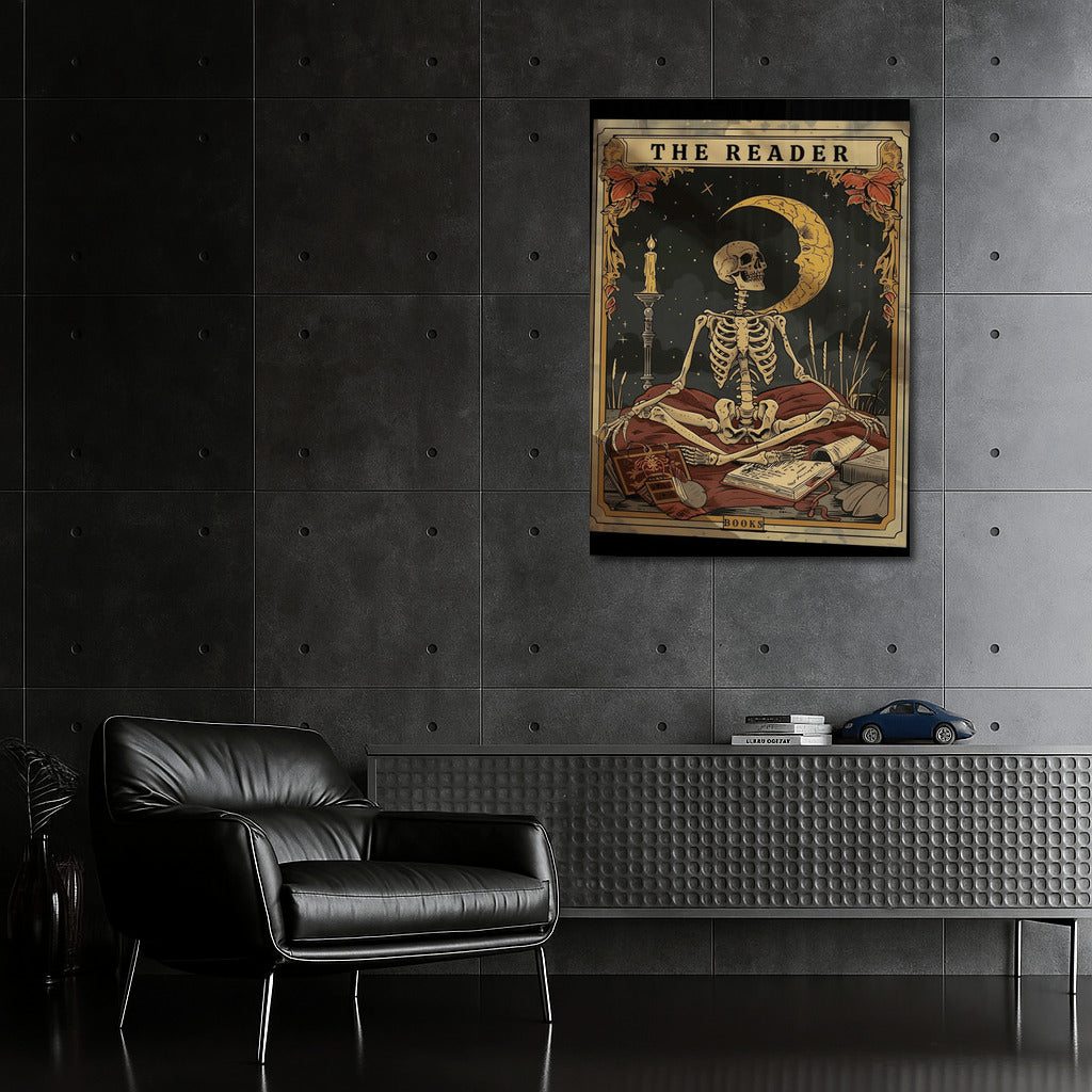 Moon Reader: Gothic Skeleton Among Candles and Books Wall Art