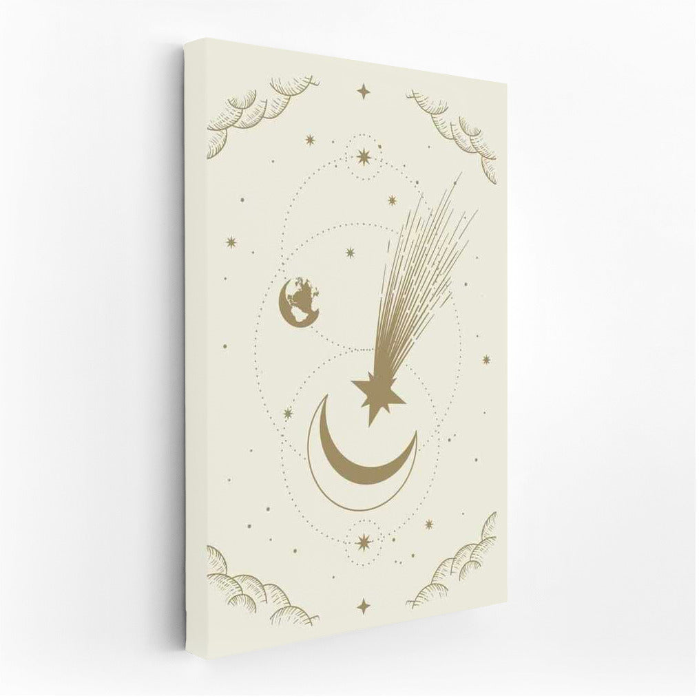 Mysterious wall art: cosmic motifs, moon and star create an atmosphere of dream and infinity. Space in every stroke! See more from the collection: Zodiac Sign & Astrology Art
