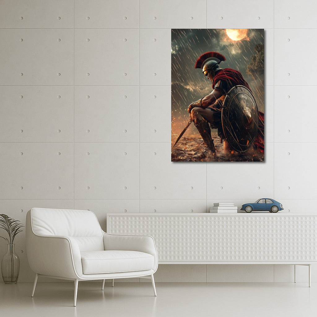 A powerful image of a warrior being swept away by rain and the moon darkening the sky. A perfect poster to inspire and empower your wall! See more from the collection: Mixed Wall Art