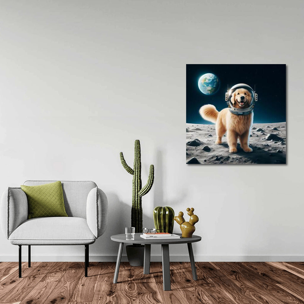 Dog on the Moon 3 poster - furry astronaut on the lunar surface looking at the Earth. Space wall art. ?? See more from the collection: Animals Art
