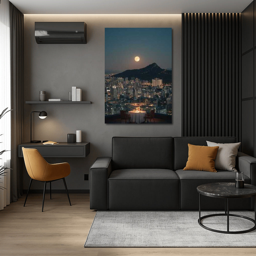 Moonlit Night Over Seoul: Wall Art Where Skyscrapers Meet Mountains. Be transported to the heart of South Korea. See more from the collection: Cityscapes & Skylines Art