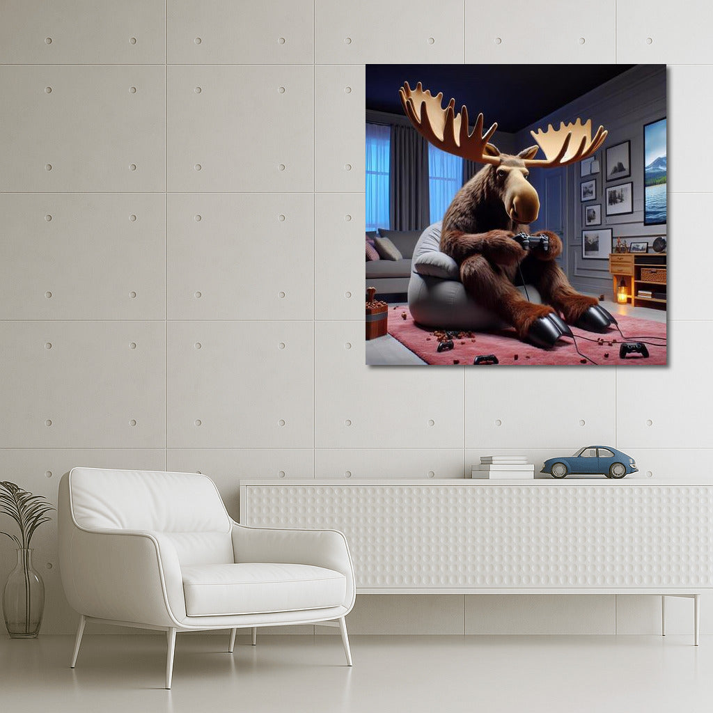 Moose Gamer in Home Theater: Virtual Adventures Wall Art