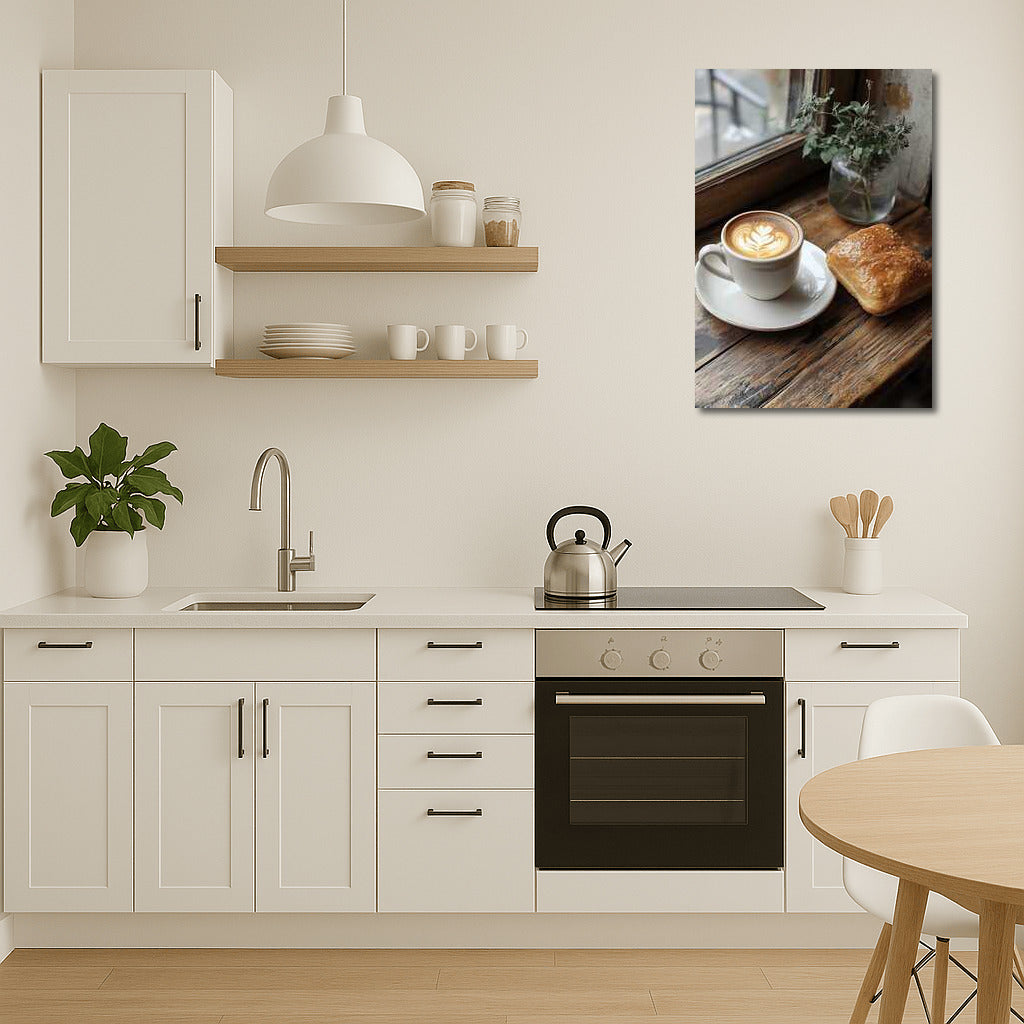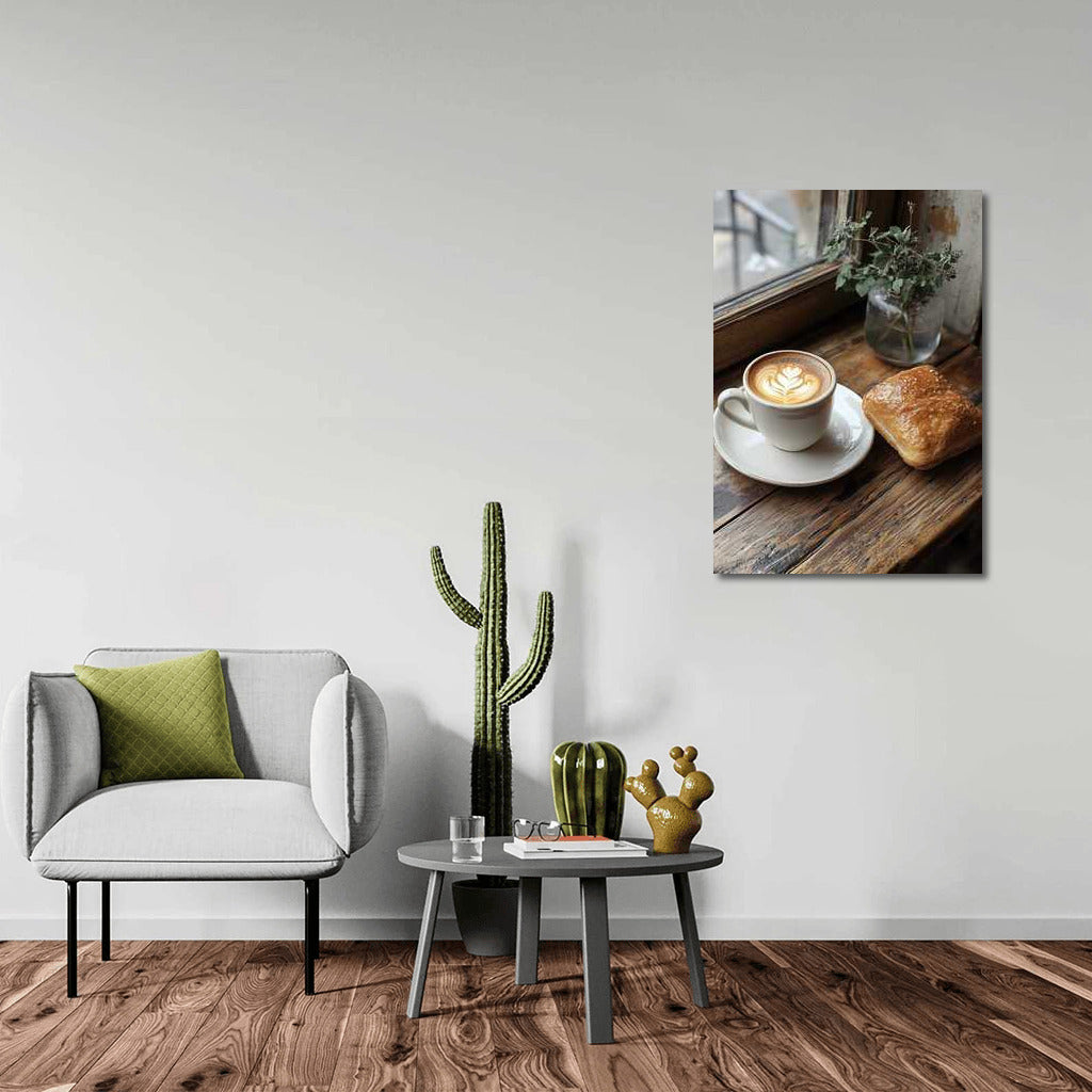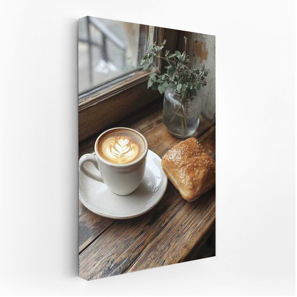 Enjoy the coziness: a poster with aromatic cappuccino and fresh pastries will add warmth and style to your interior. See more from the collection: Coffee & Tea Art & Drinks