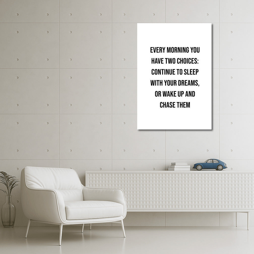 Awaken inspiration with this painting! The poster reminds: Every morning you have two choices... Awaken your dreams! See more from the collection: Inspirational & Motivational Quotes Art
