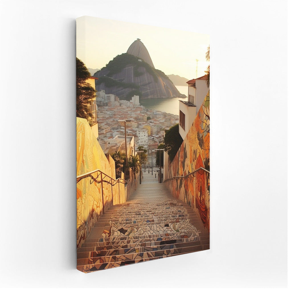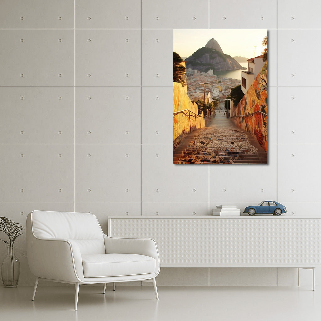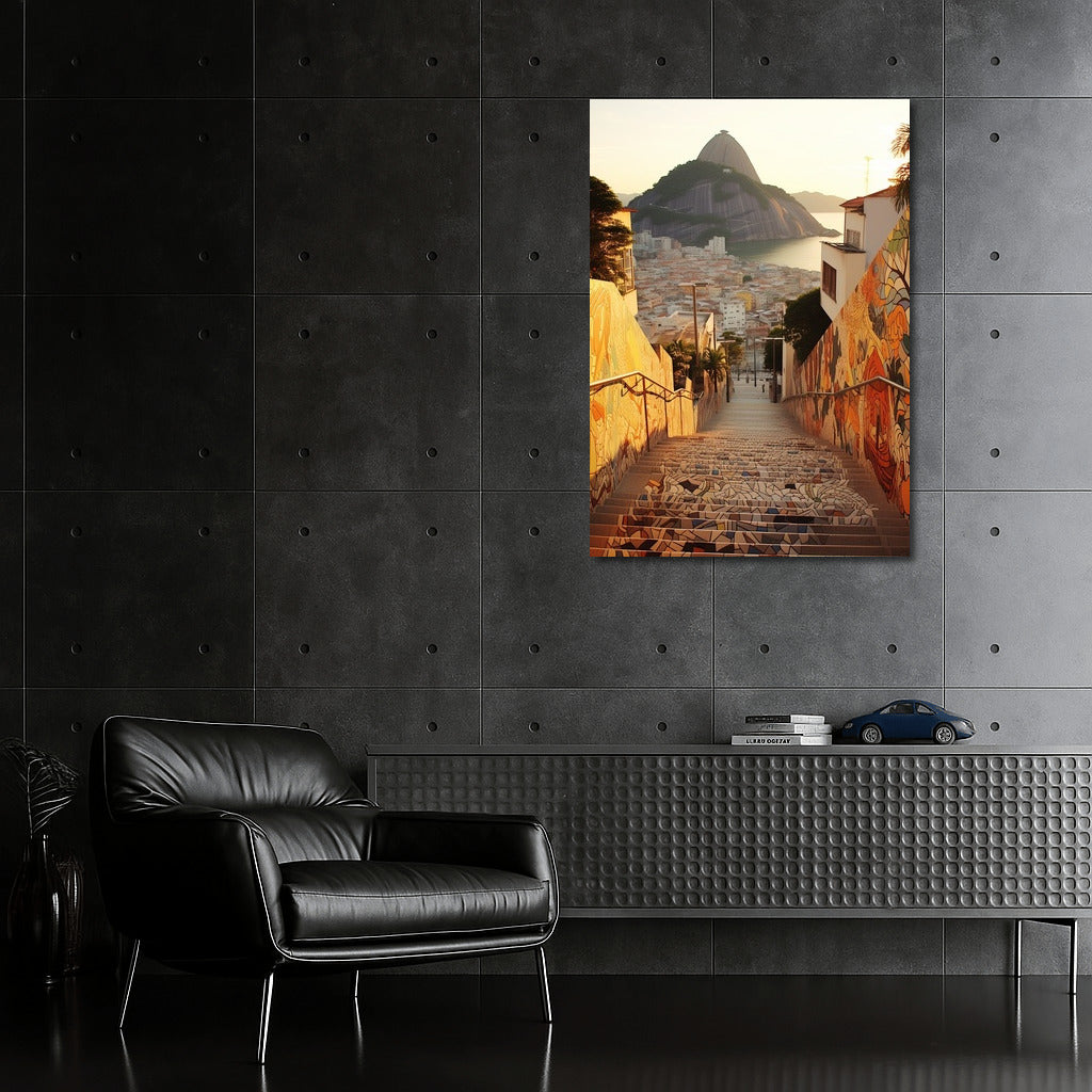 Immerse yourself in the atmosphere of Rio: a poster with a view of the city and the mountain, framed by colorful mosaics. Dream wall art! See more from the collection: Mixed Wall Art