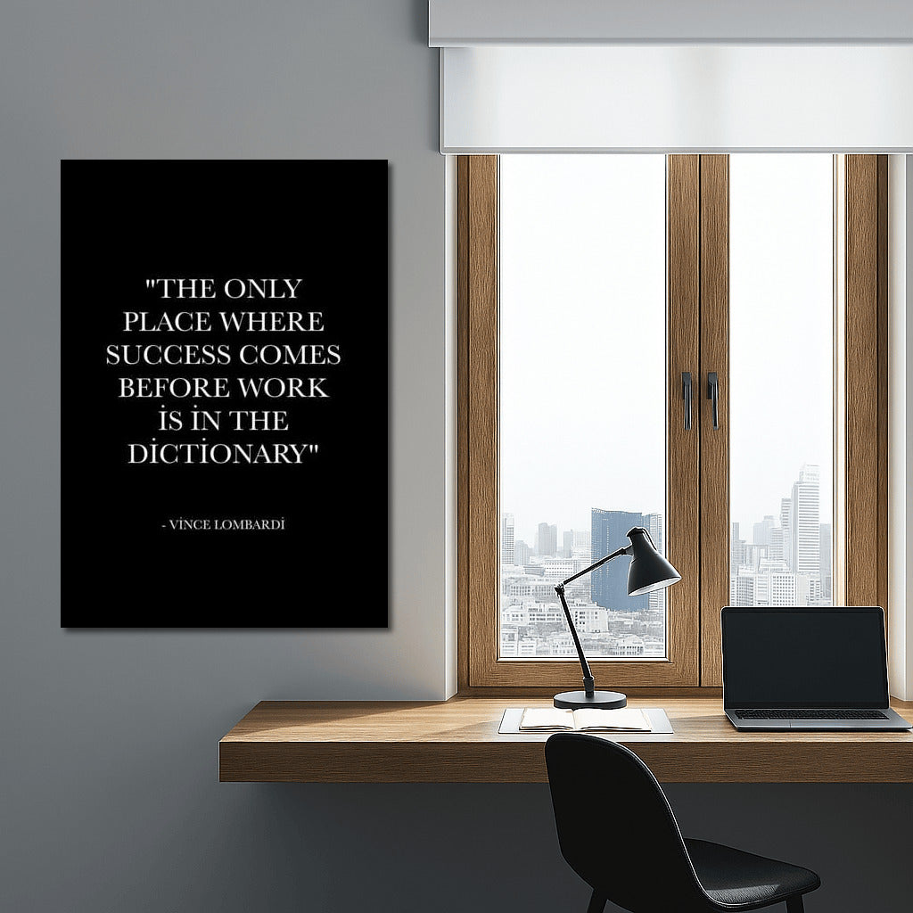 Motivational painting The only place where success comes before work is in the dictionary - Vince Lombardi. Inspiration and drive! See more from the collection: Inspirational & Motivational Quotes Art