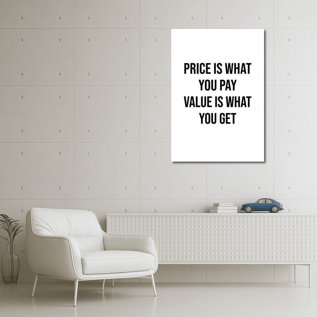 This poster inspires: PRICE IS WHAT YOU PAY, VALUE IS WHAT YOU GET. Decorate your wall with art, adding motivation and inspiration! See more from the collection: Inspirational & Motivational Quotes Art