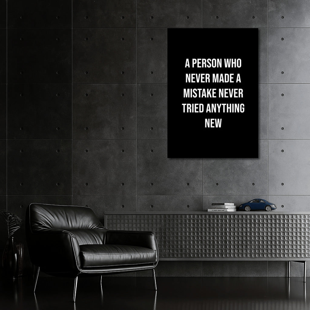Text: A person who never made a mistake never tried anything new. A poster that blows up the boundaries! Wall art for those who are not afraid of fails. See more from the collection: Inspirational & Motivational Quotes Art
