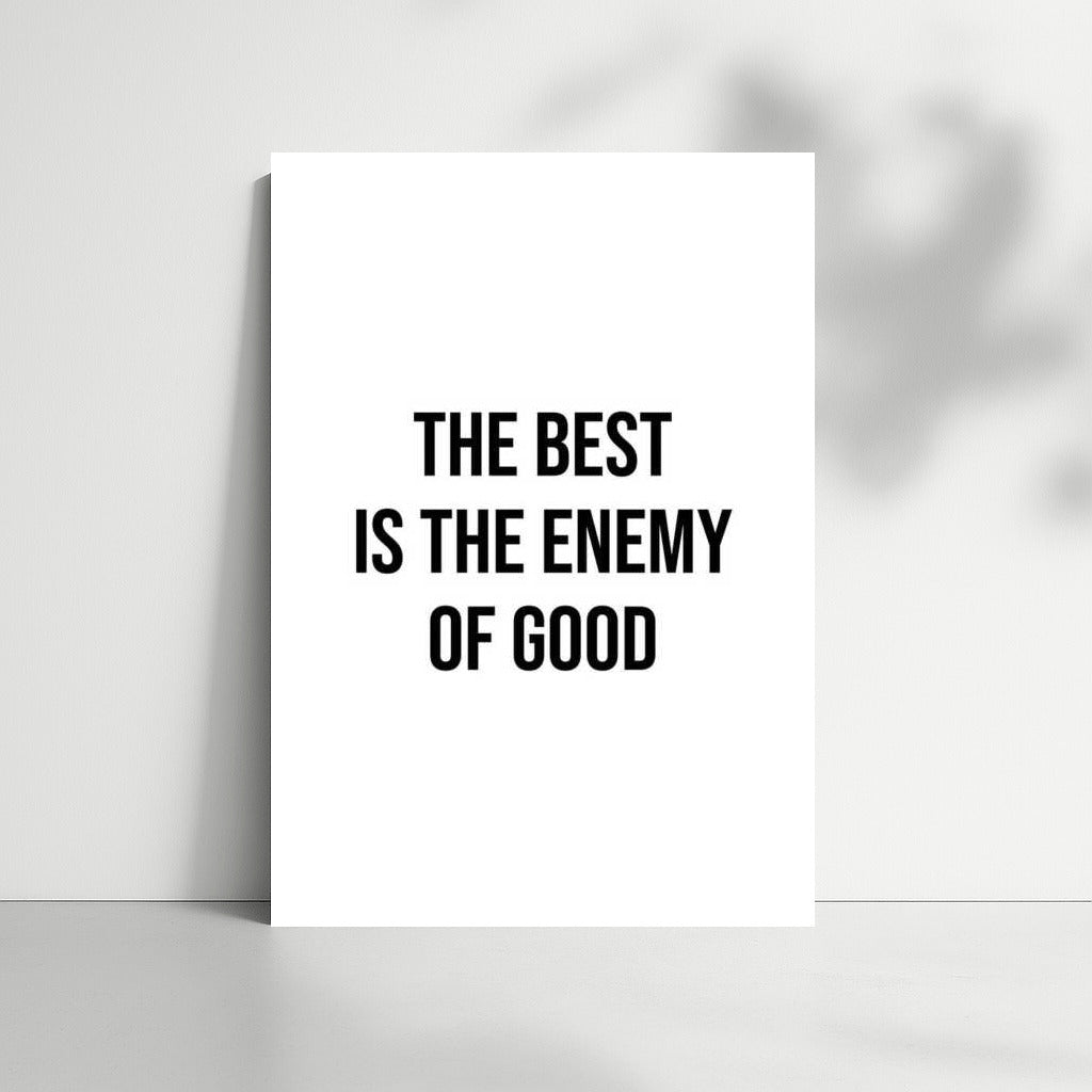 The best is the enemy of good poster - inspiration for action. Wall art where motivation leads to progress. See more from the collection: Inspirational & Motivational Quotes Art