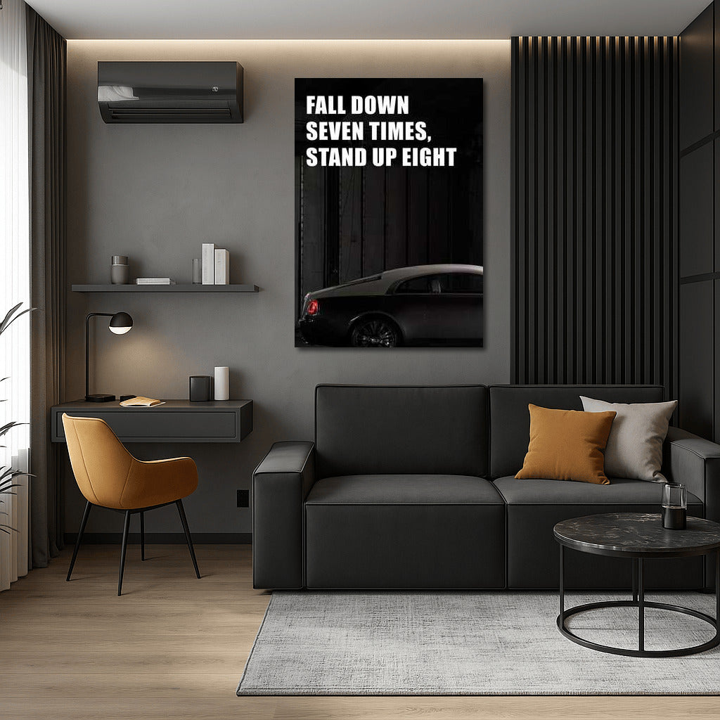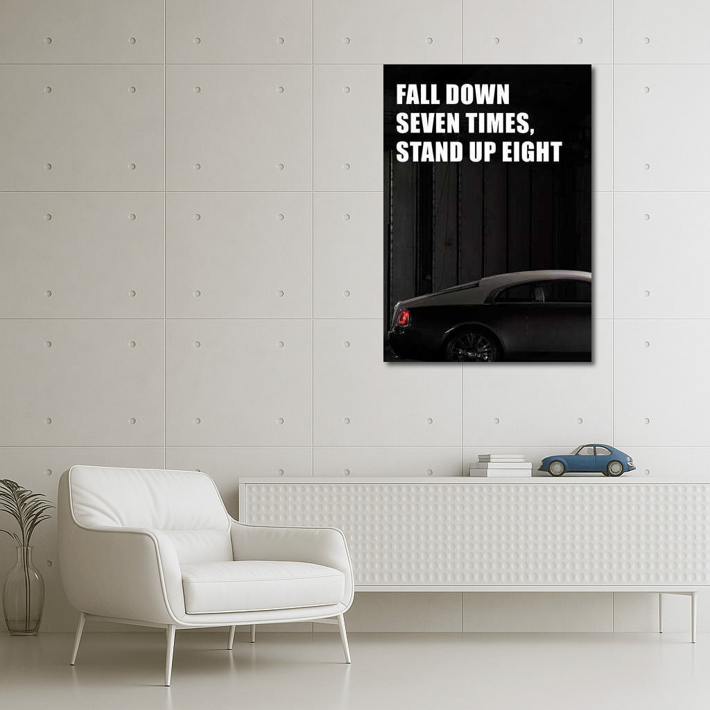 Poster Text: FALL DOWN SEVEN TIMES, STAND UP EIGHT. Lift your spirit with this painting! See more from the collection: Inspirational & Motivational Quotes Art