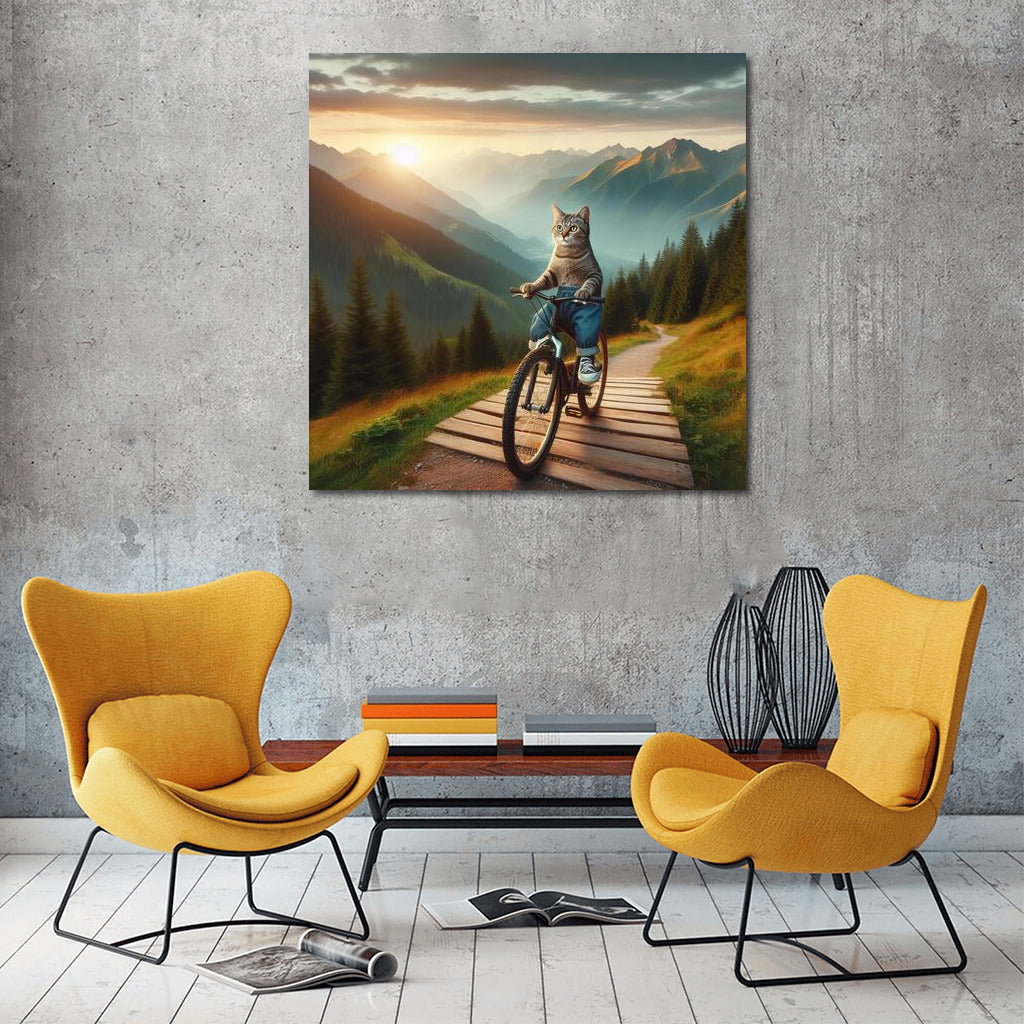 Mountain Cat on a Bike: Adventure on the Trail Wall Art