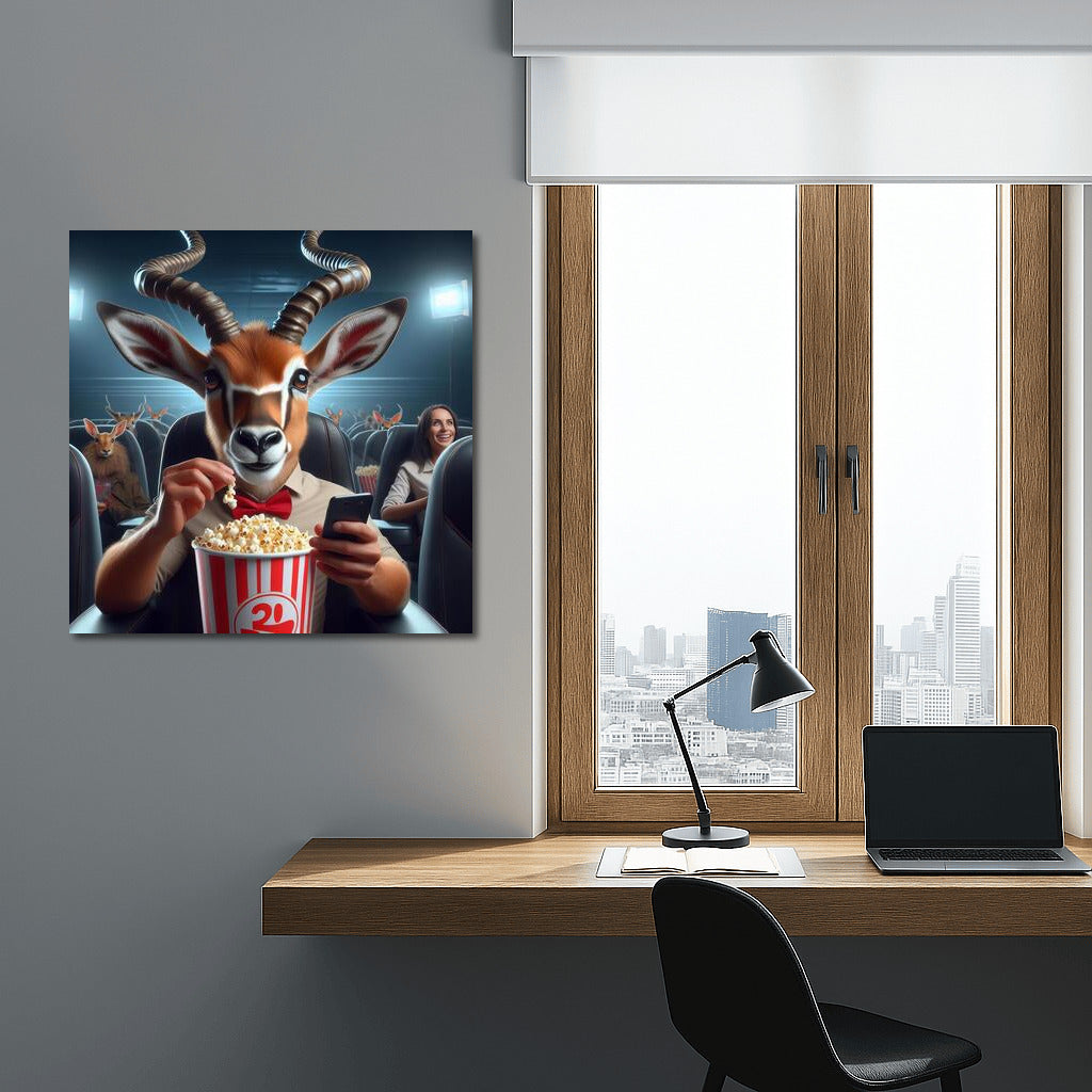 Antelope in the cinema: popcorn, film and an exciting atmosphere. The perfect poster for lovers of unusual wall art! See more from the collection: Animals Art