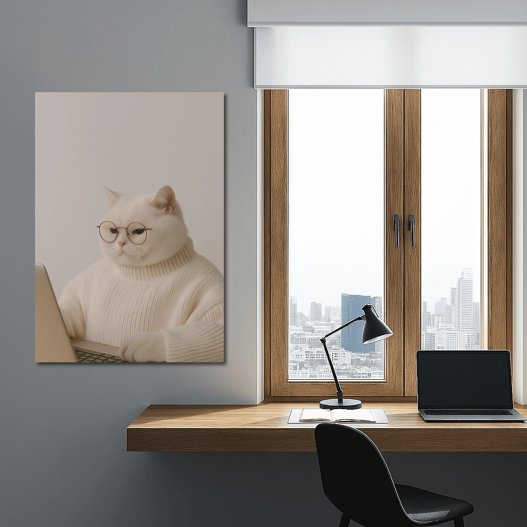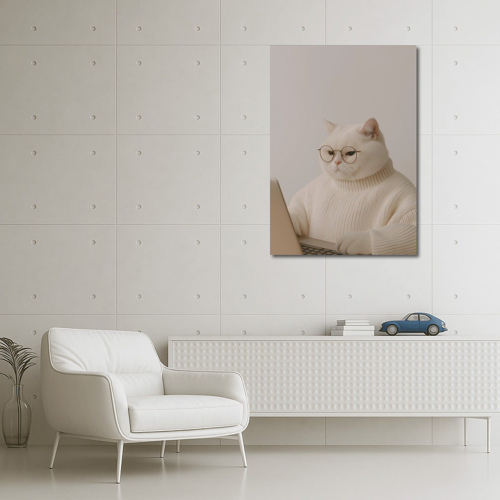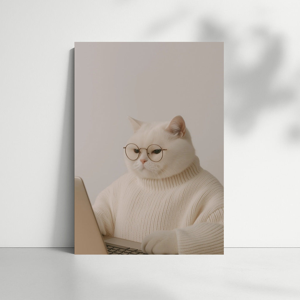 A cozy poster with an adorable cat in a sweater and glasses. Wall art that will add warmth and coziness to your interior. See more from the collection: Animals Art