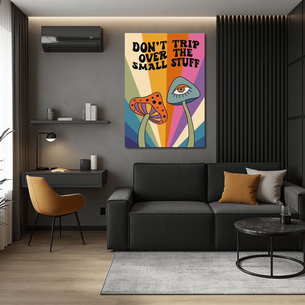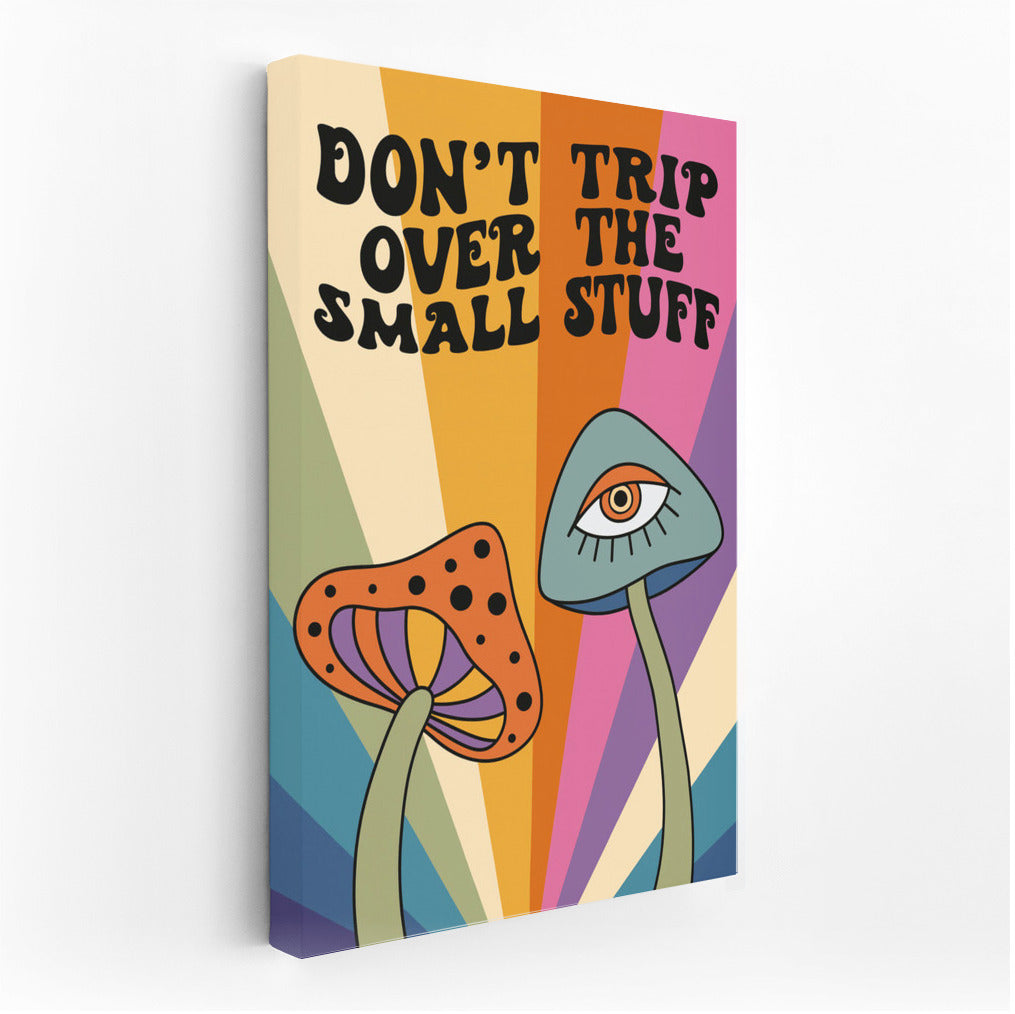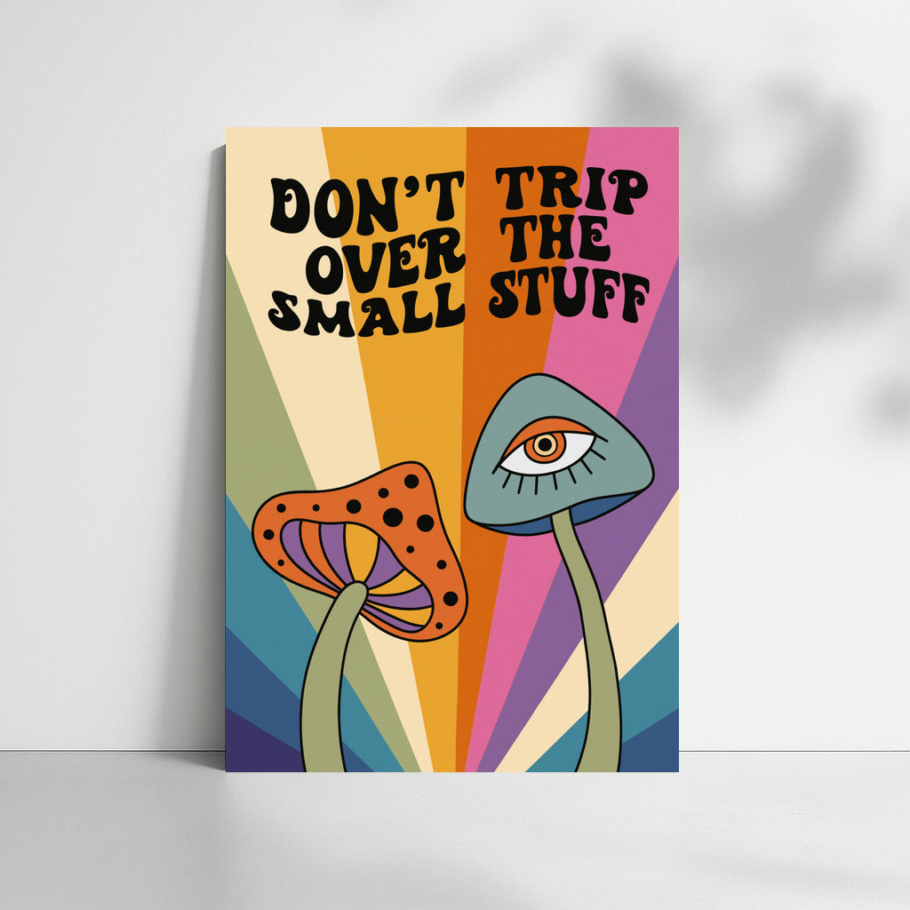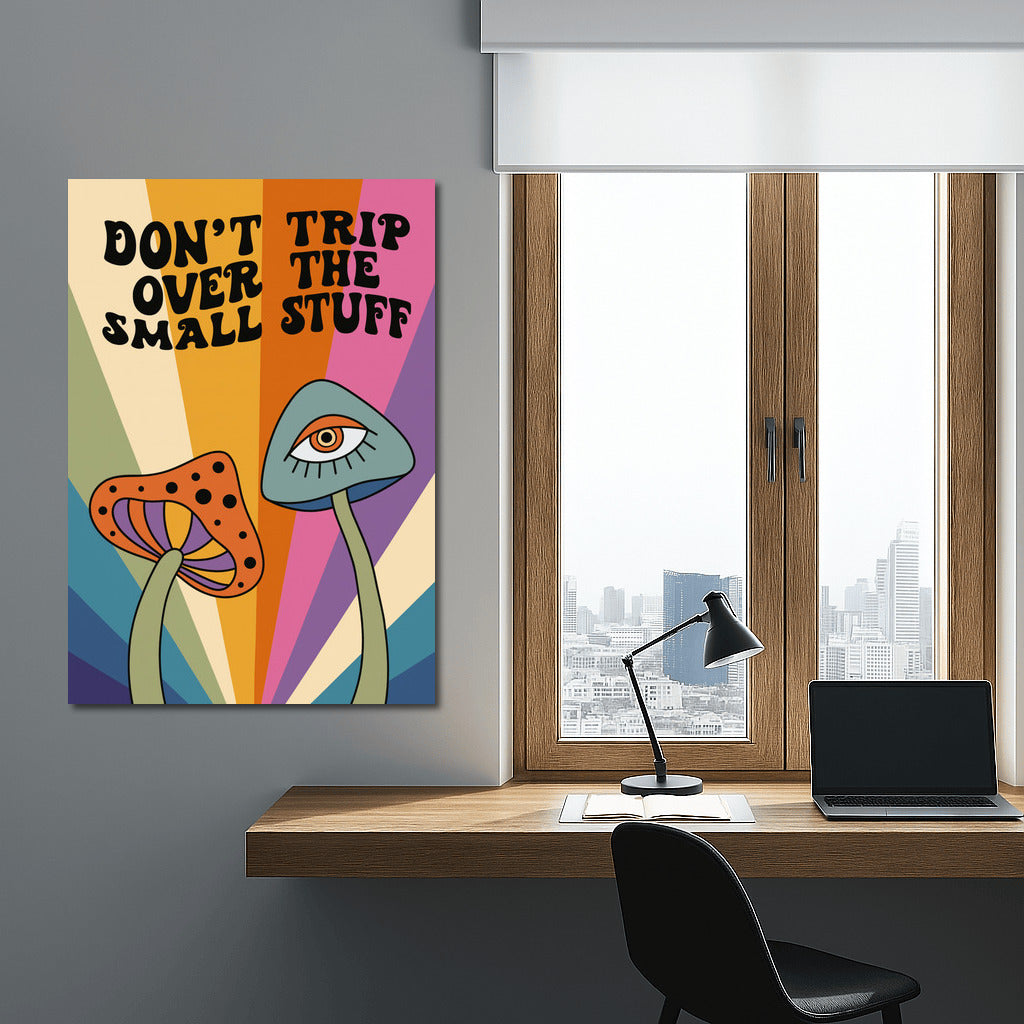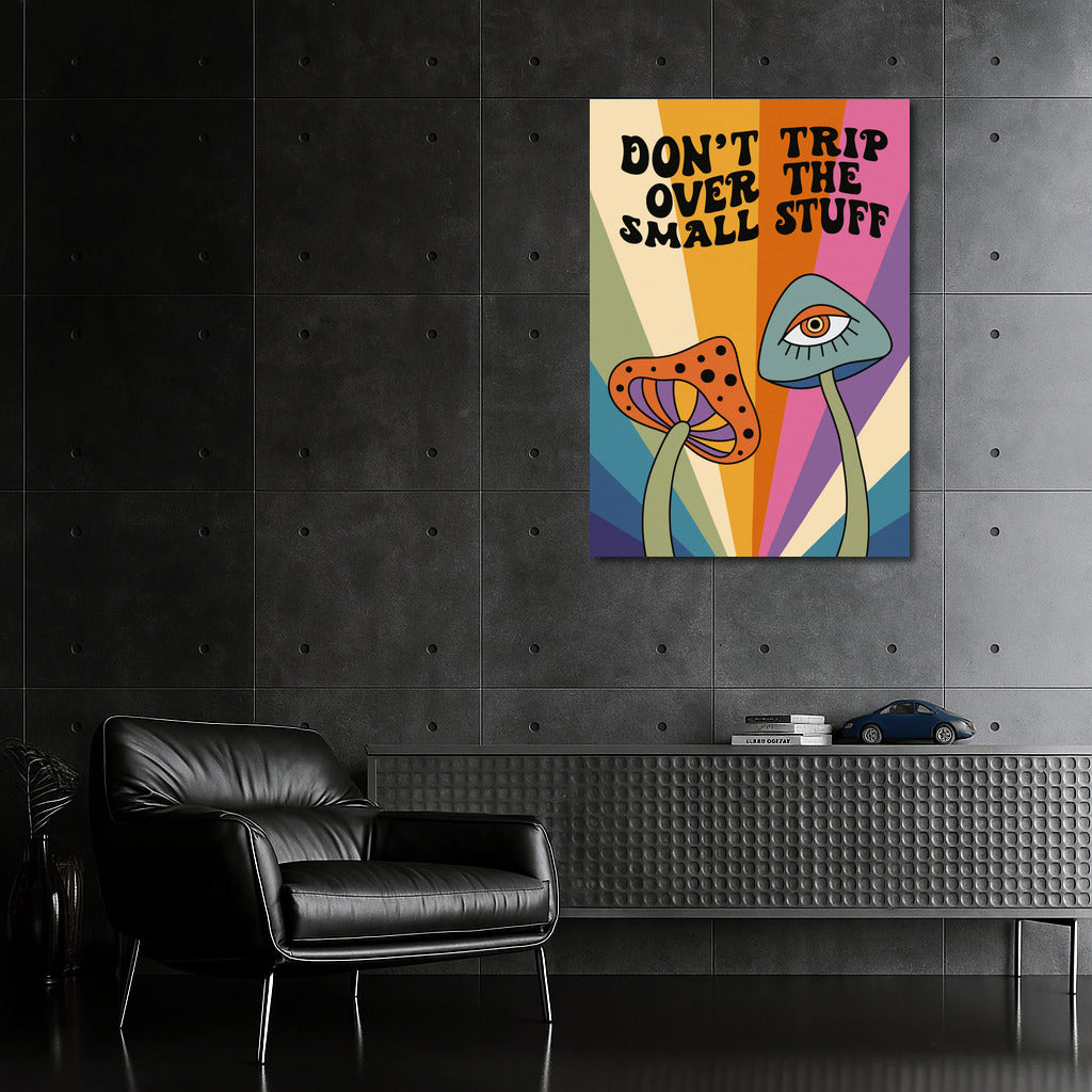 A vibrant poster with mushrooms and an eye in Trippy style. Let your wall art remind you: don't trip over the little things! See more from the collection: Trippy & Psychedelic Art