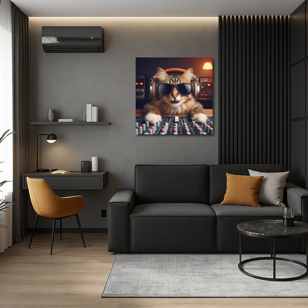 Music Guru: Cat Producer in Stylish Glasses Wall Art