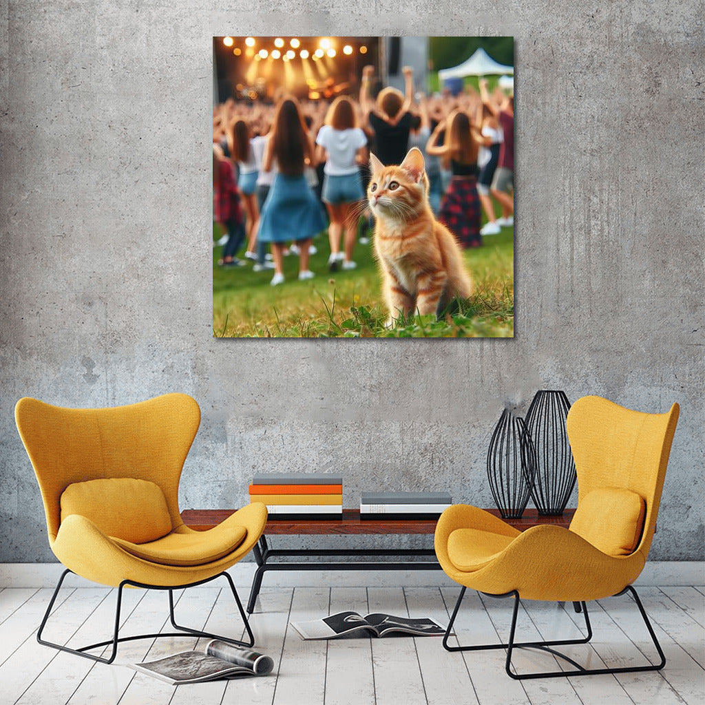 Cat in the spotlight: wall art that combines the vibrancy of a concert with the charm of a furry audience member. See more from the collection: Animals Art