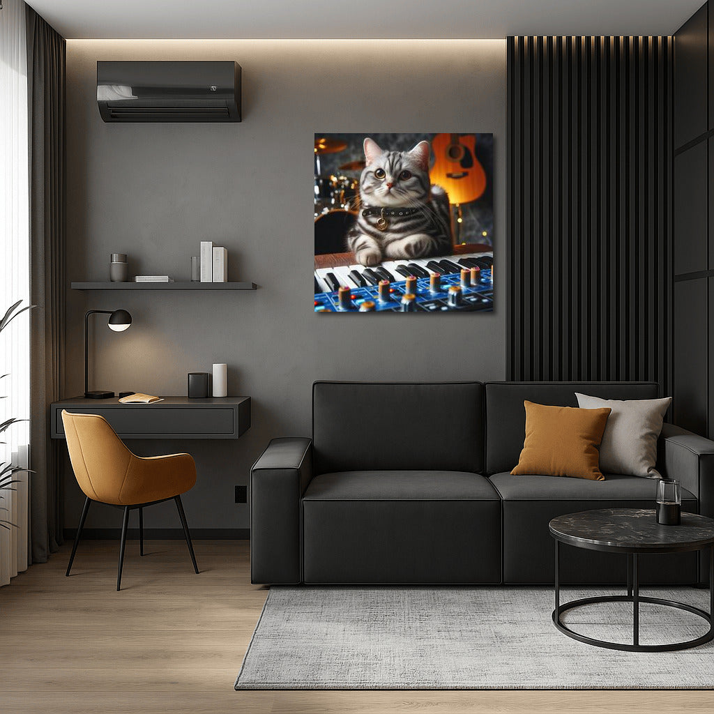 Charming cat in a music studio - add musical harmony to your interior with this unique wall poster! See more from the collection: American Shorthair Cat Art