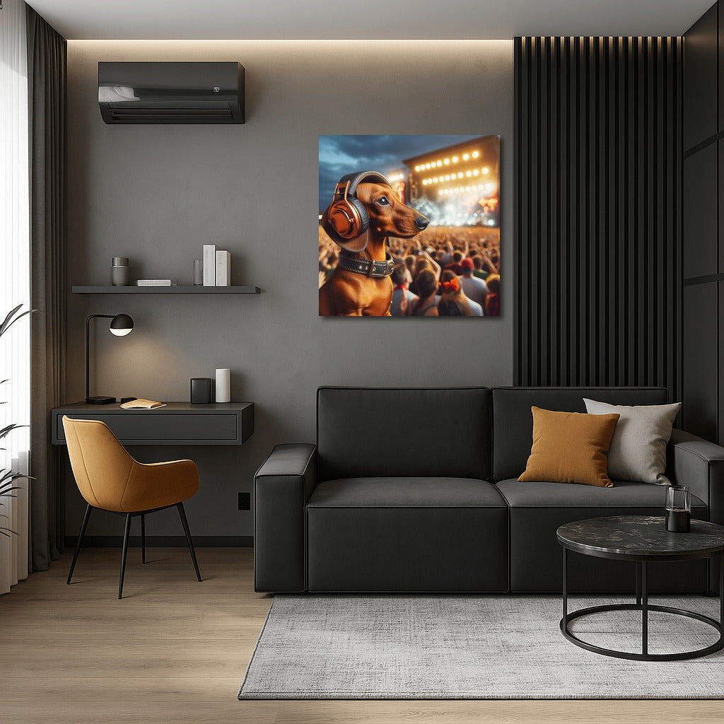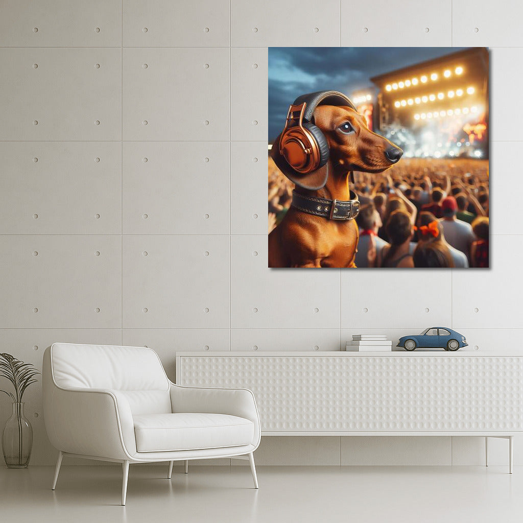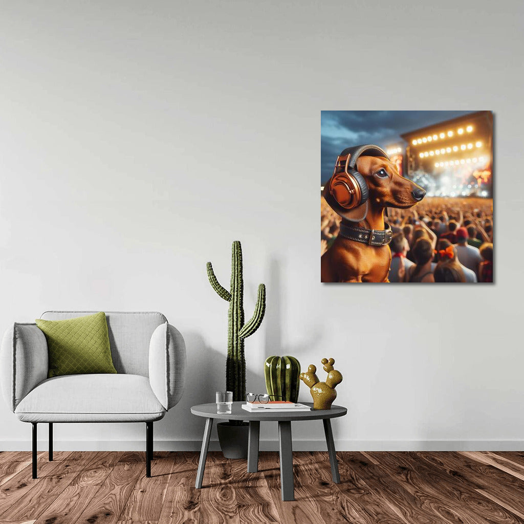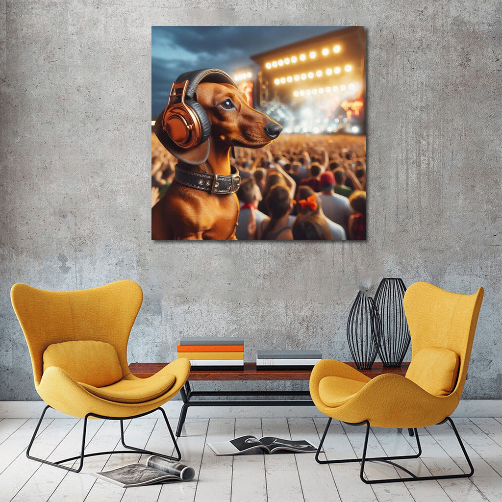 Dive into the world of musical magic with this painting: dog at a concert. A unique poster for your wall art! See more from the collection: Animals Art