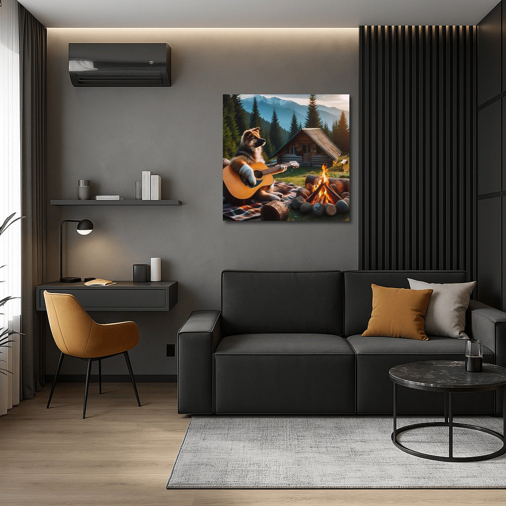 Musical Dog by the Forest Campfire: Magic for Your Home Wall Art