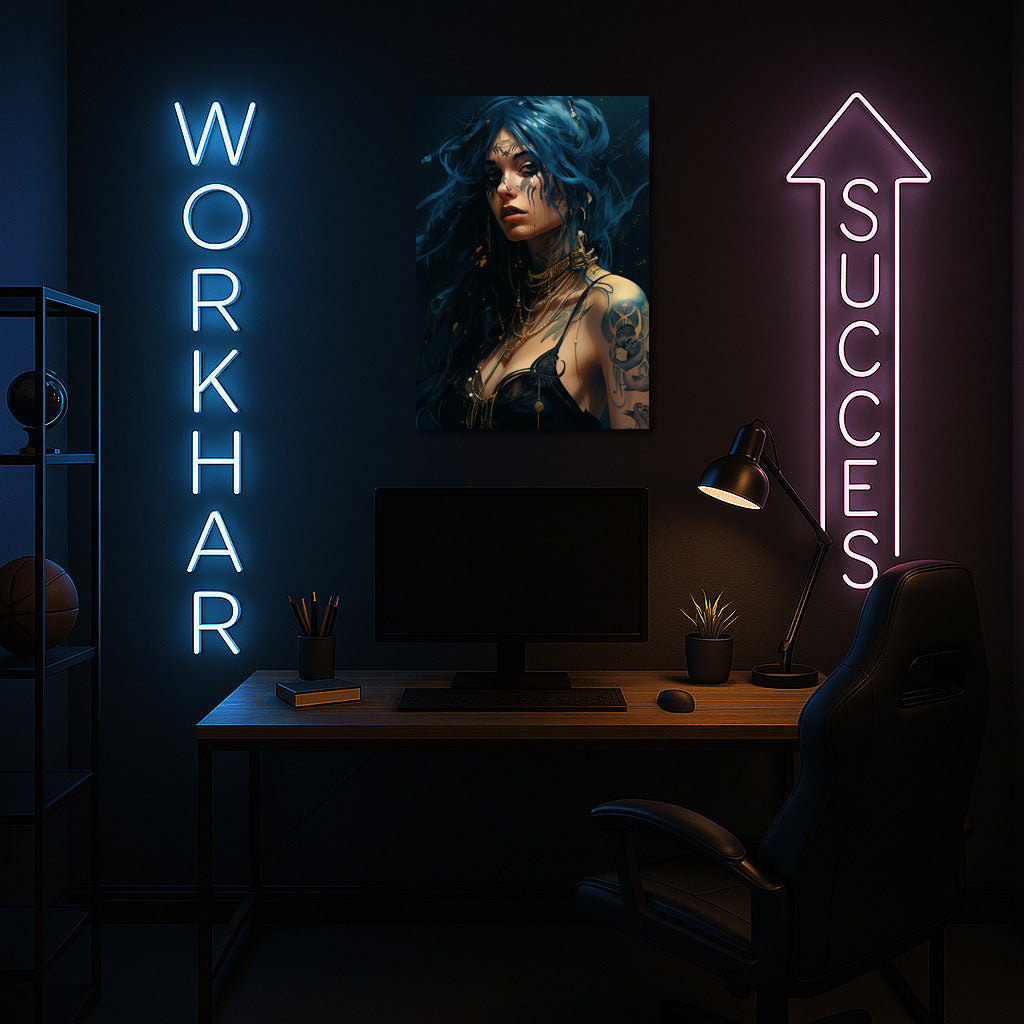 Elegant poster with a mysterious girl with blue hair. Add a touch of mysticism to your wall art! See more from the collection: Wall Art with Women