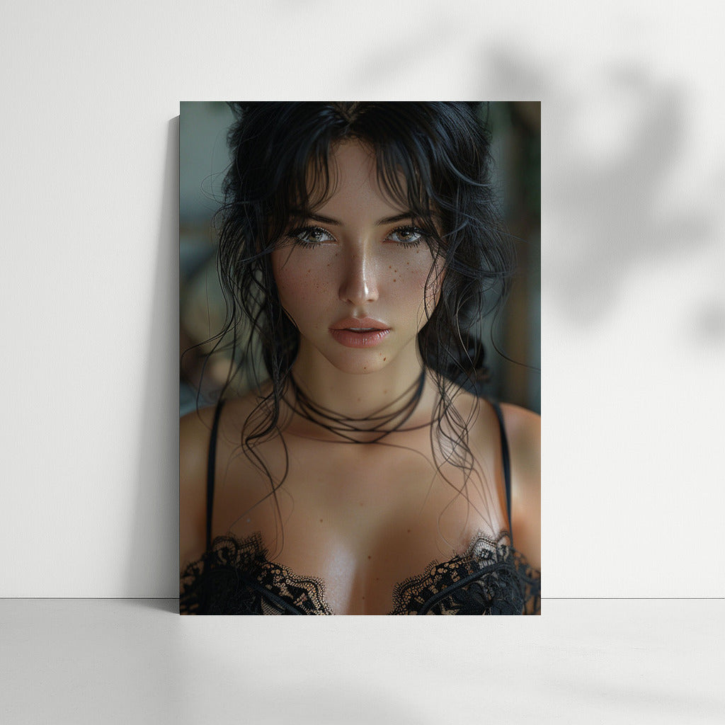 Mysterious Brunette in Black Dress: Fantasy Portrait Wall Art