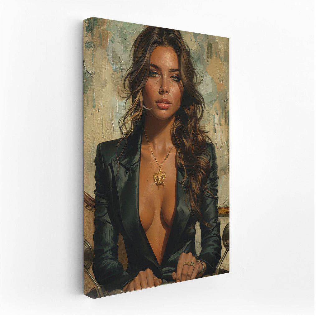 Elegant wall art: a painted portrait of a young girl radiating charisma and mystery. A modern accent in the interior. See more from the collection: Wall Art with Women