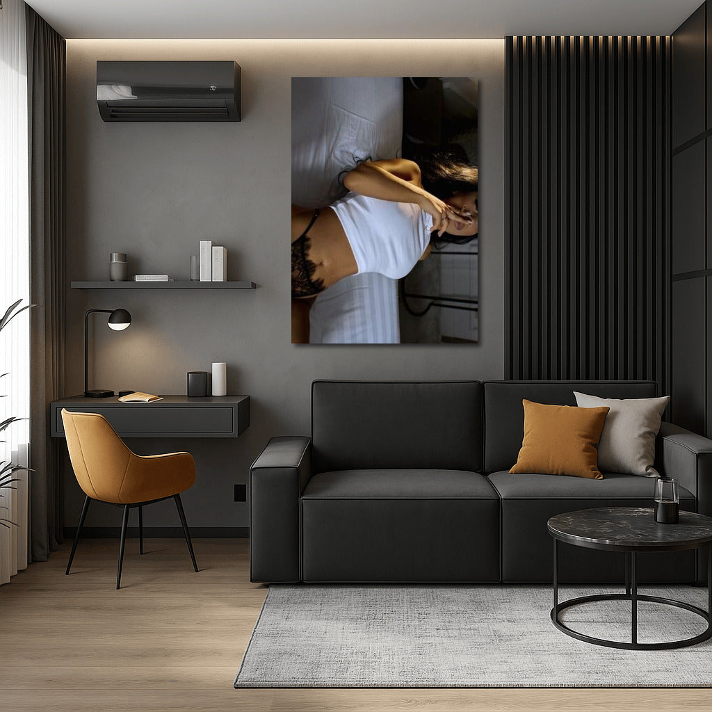A graceful painting in the Erotic genre: a mysterious figure in black and white will add spice to your wall art. See more from the collection: Erotic Art