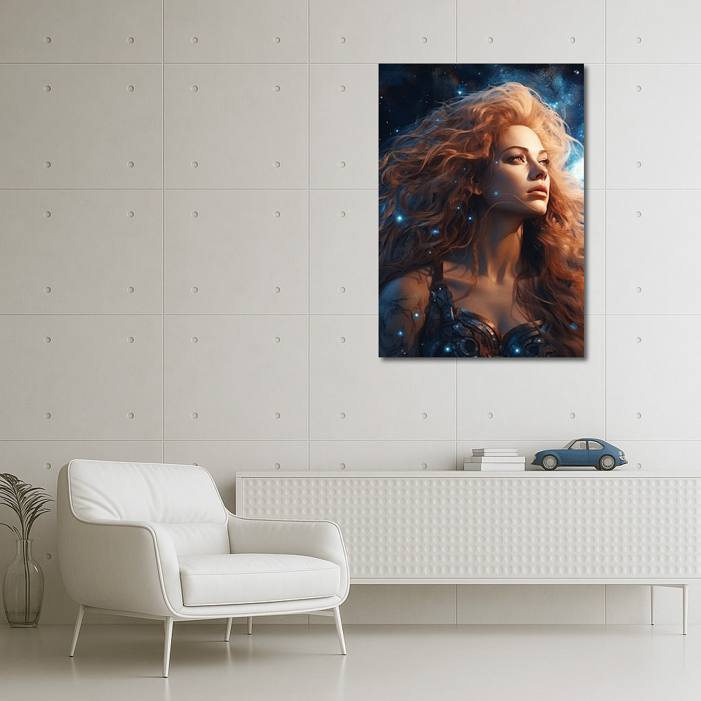 Mysterious Girl in the World of Fantasy and Stars Wall Art