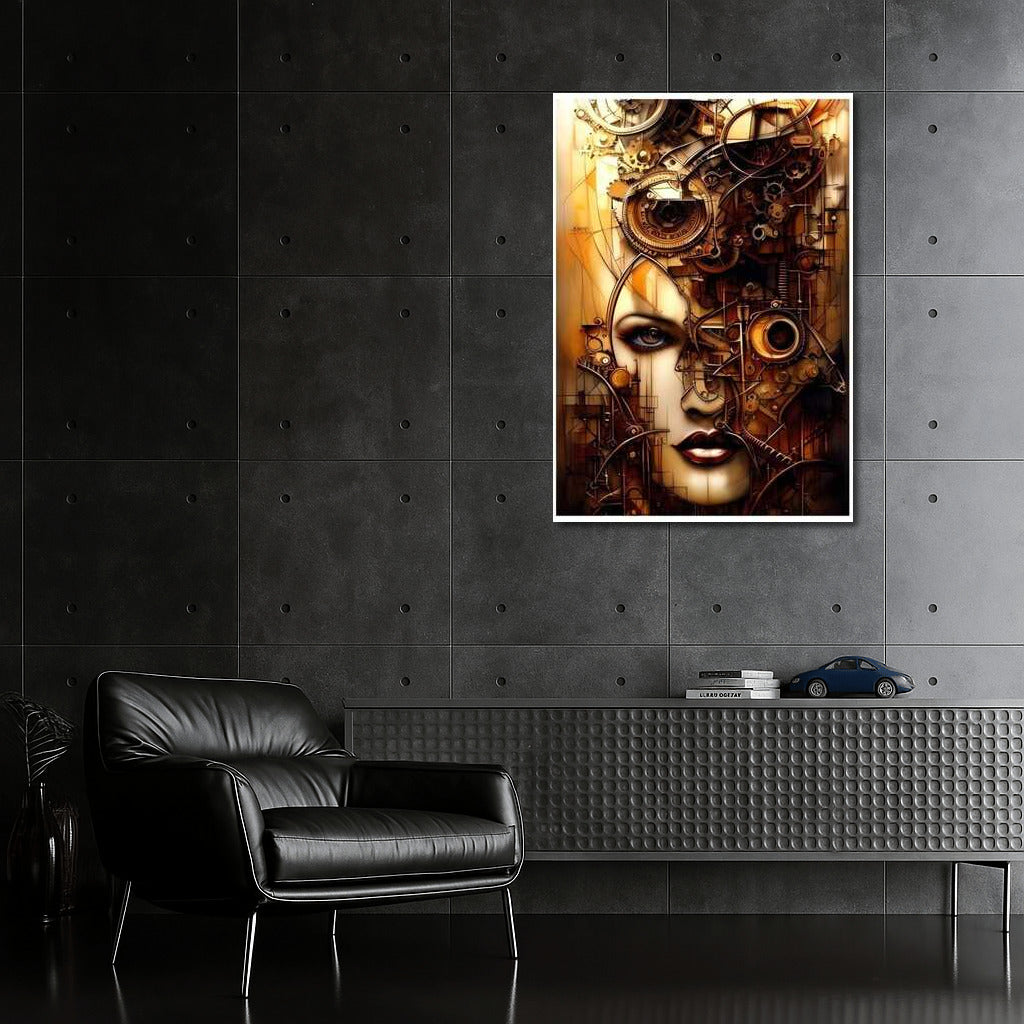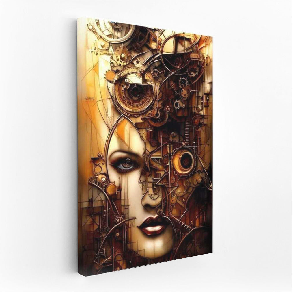 Dive into the world of Steampunk with this painting: gears and mechanisms create a mysterious portrait for your space. See more from the collection: Steampunk Art