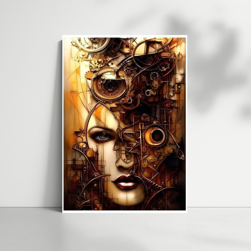 Mysterious Portrait of Gears: Dive into the World of Steampunk Wall Art