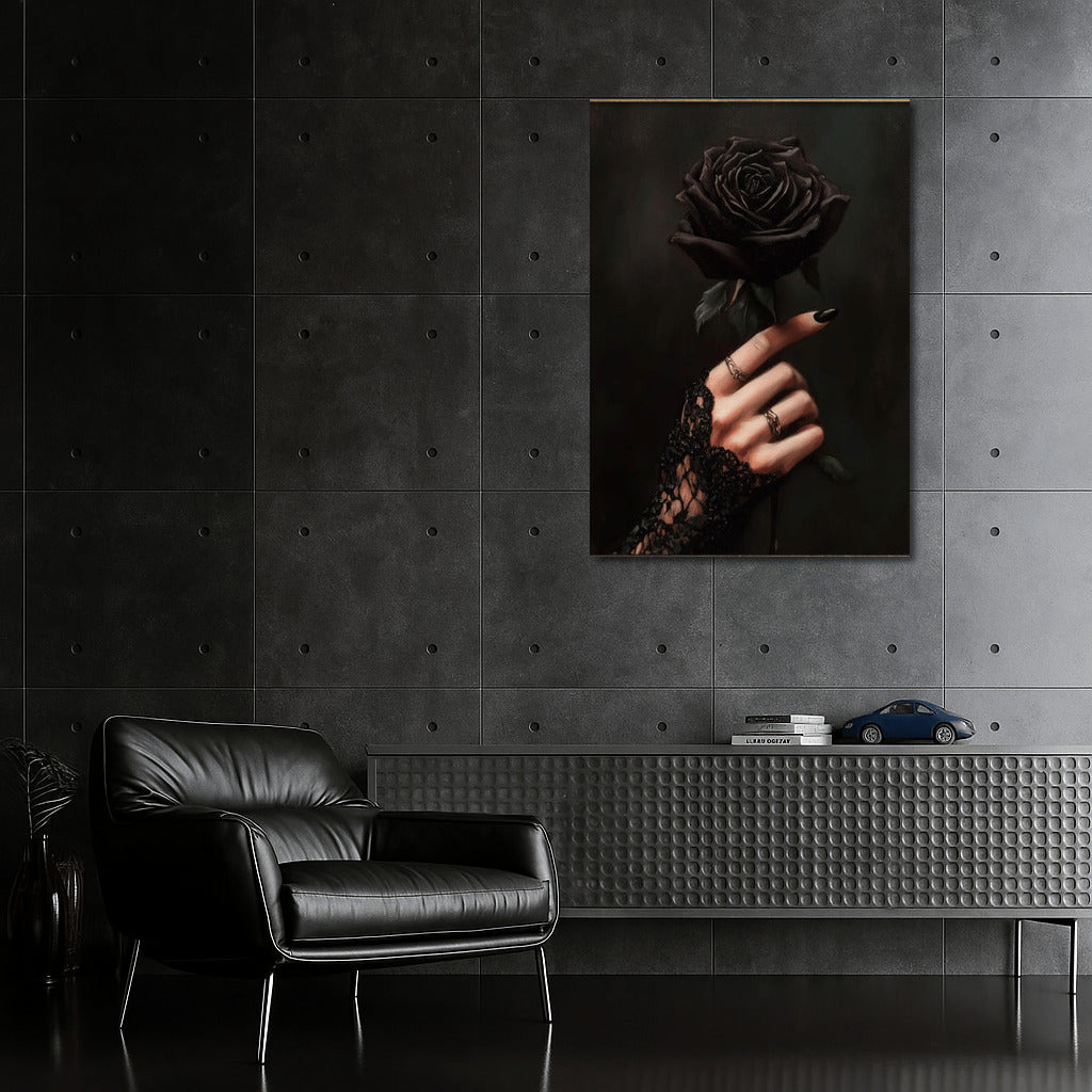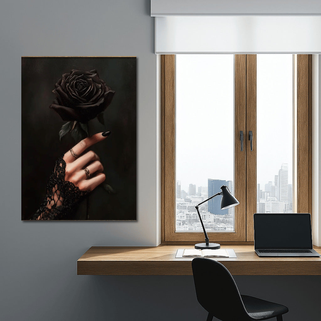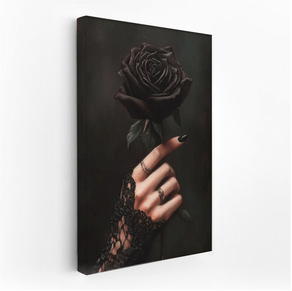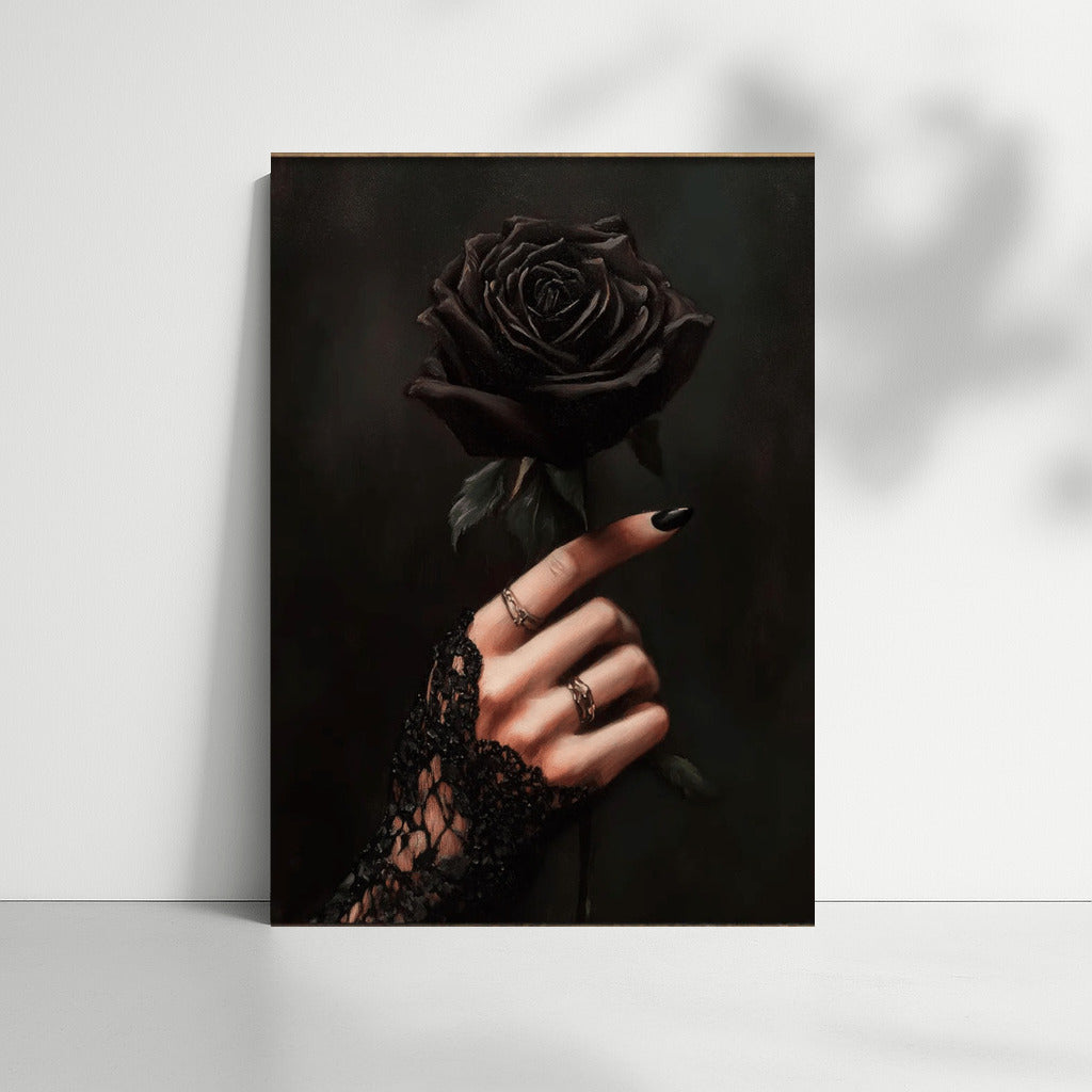 Gothic painting with a mysterious rose in a delicate lace hand. Create an atmosphere of mystery with this wall art. See more from the collection: Gothic Art