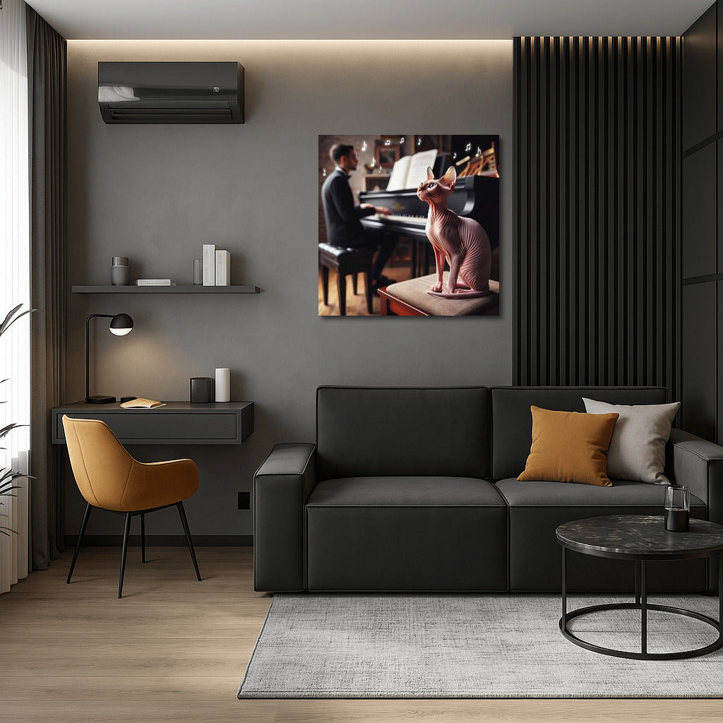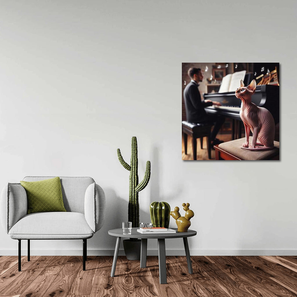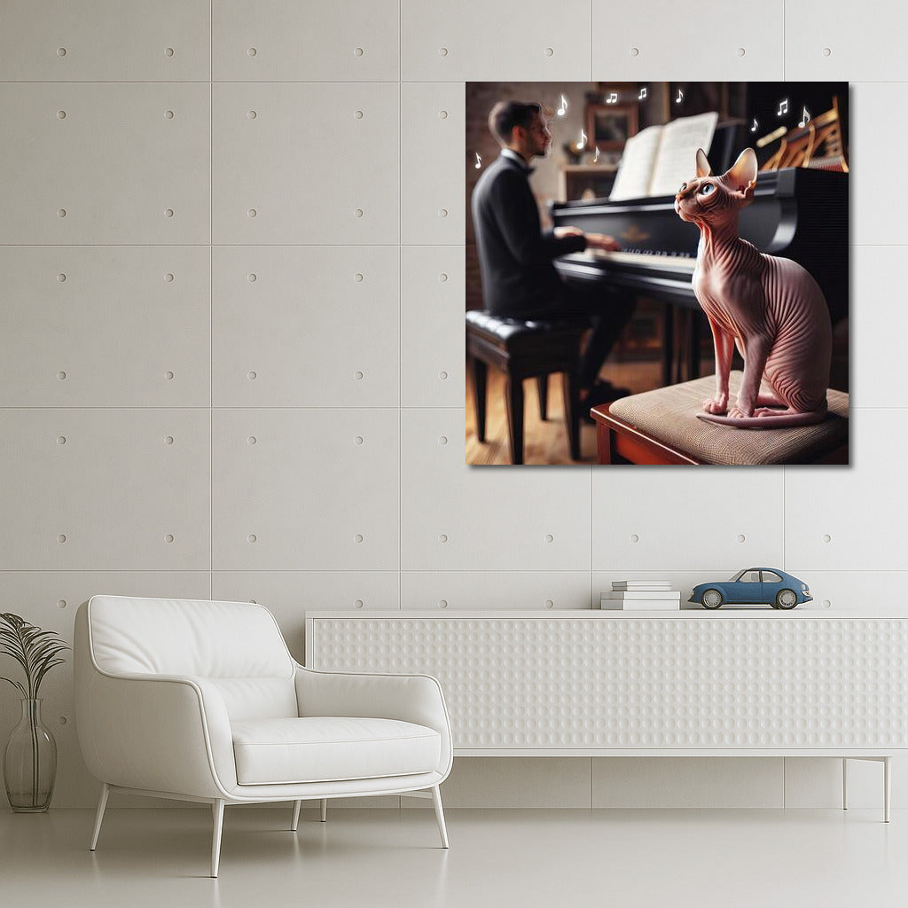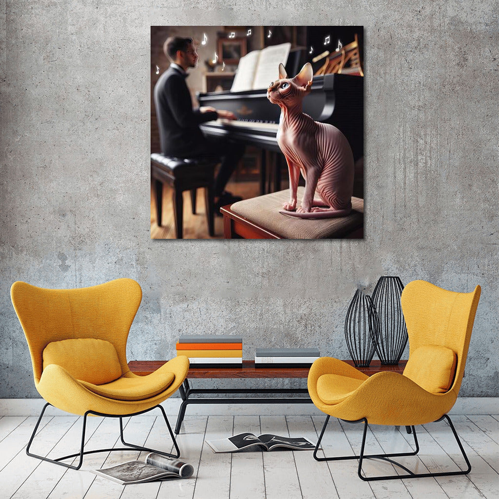 Mysterious Sphinx in the Music Studio: Cat and Melody Wall Art