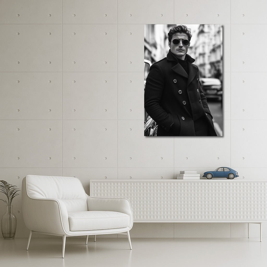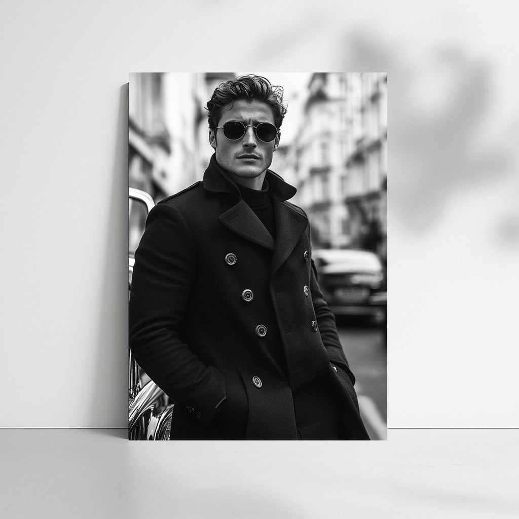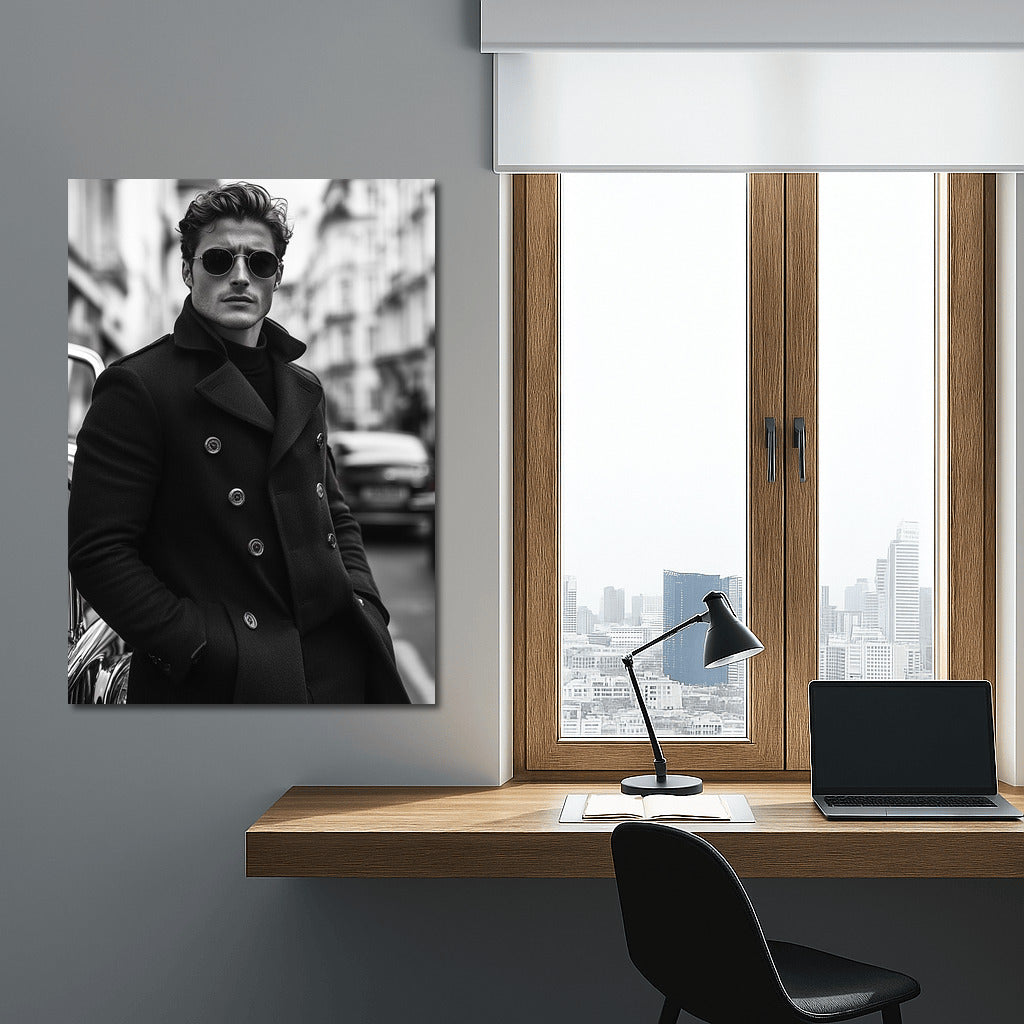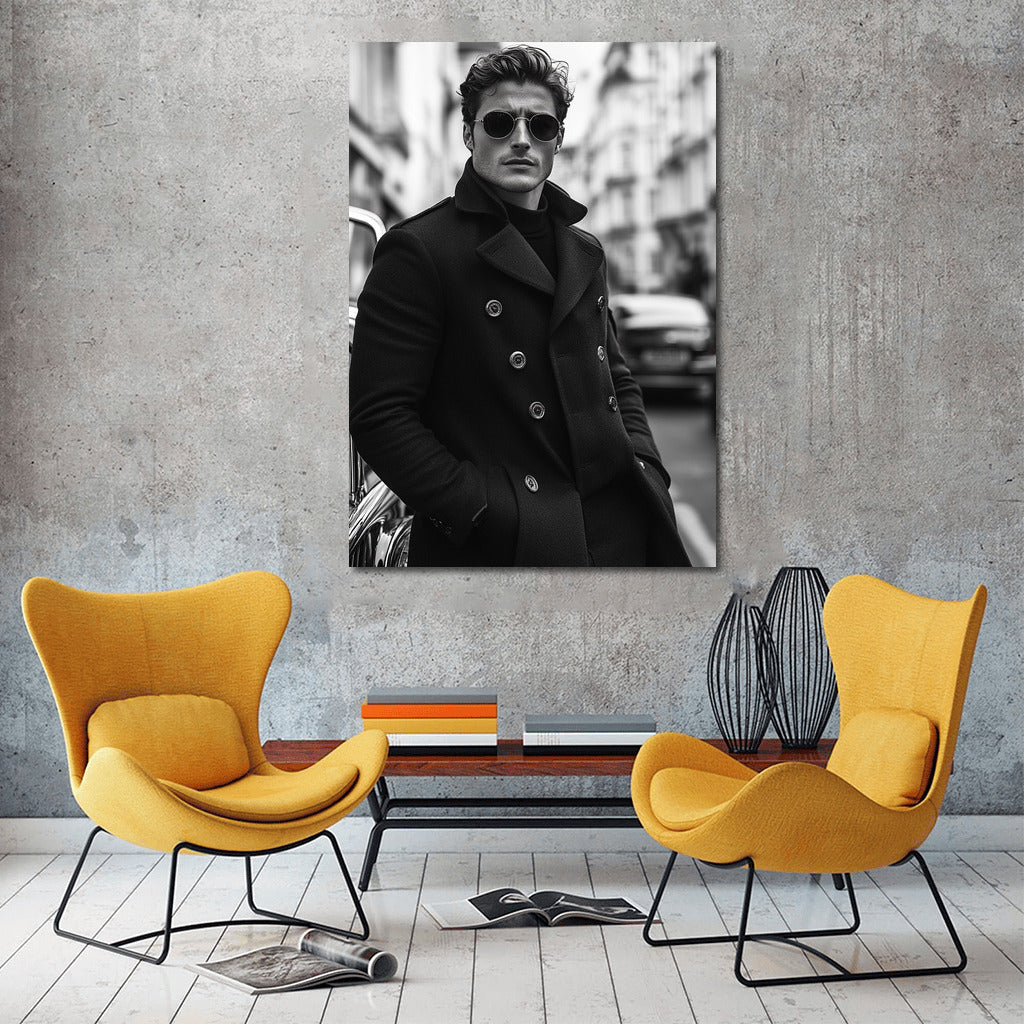An elegant painting in the Mixed style: a mysterious character in a black and white world. Ideal wall art for a style-forming interior. See more from the collection: Mixed Wall Art