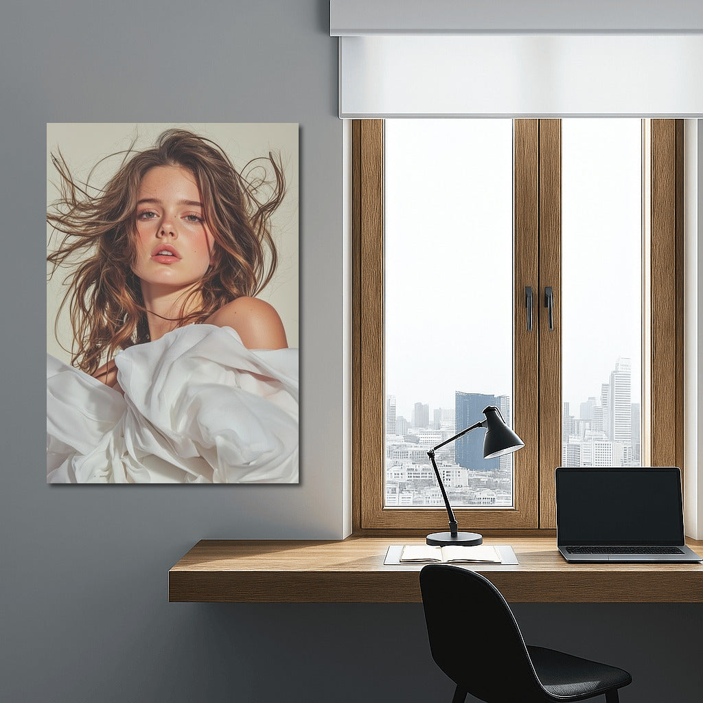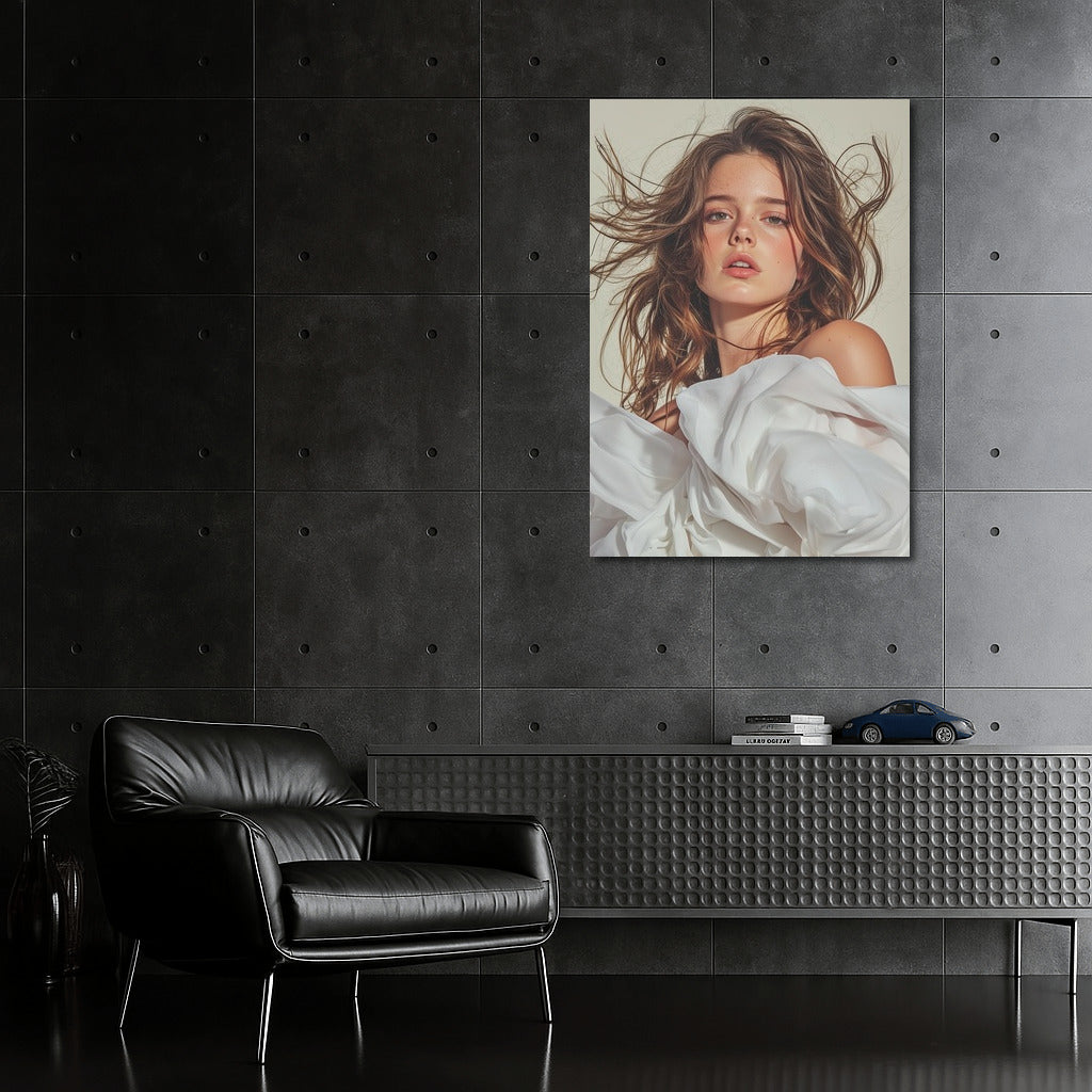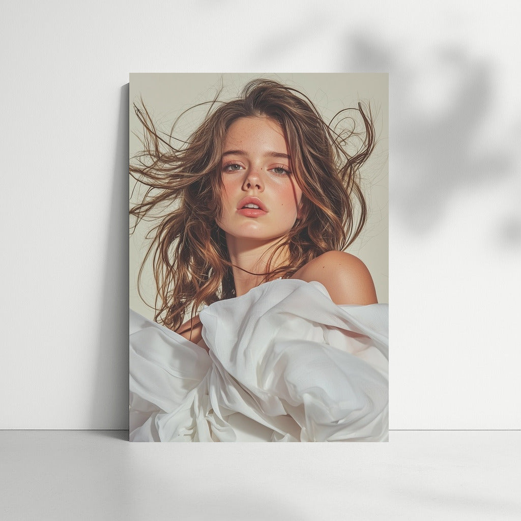 An elegant poster featuring a mysterious female figure in soft tones. Wall art that will liven up any space. See more from the collection: Wall Art with Women
