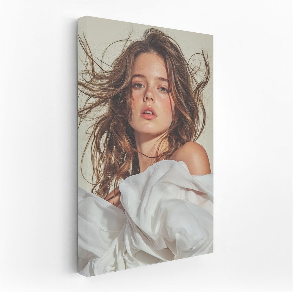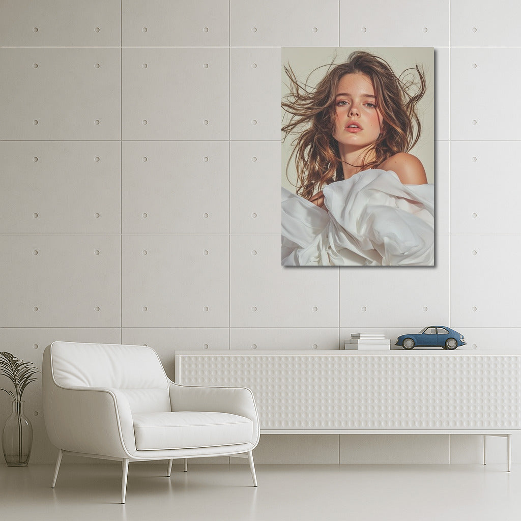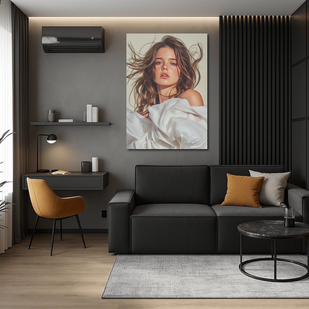 An elegant poster featuring a mysterious female figure in soft tones. Wall art that will liven up any space. See more from the collection: Wall Art with Women