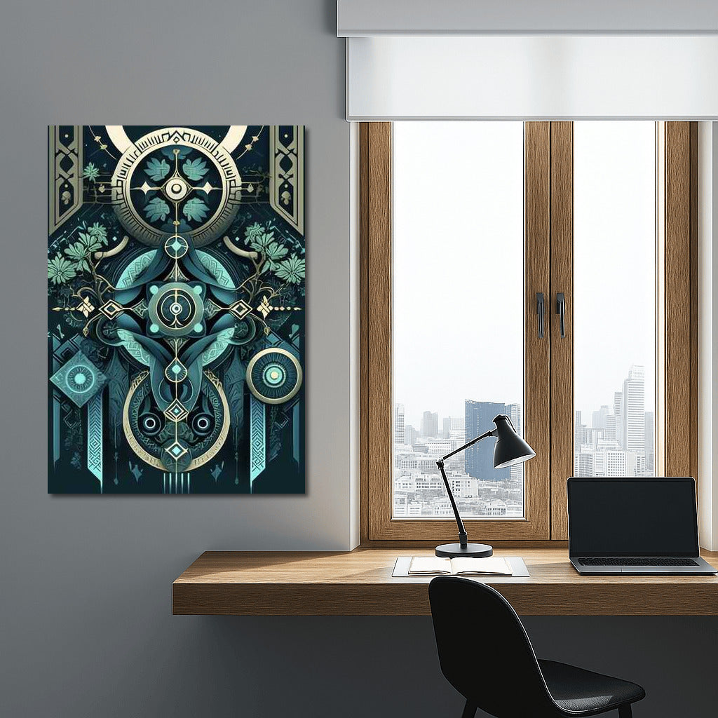 Dive into the world of Celtic geometry: an abstract poster where graceful patterns and symbols intertwine in a mystical dance. See more from the collection: Abstract Art