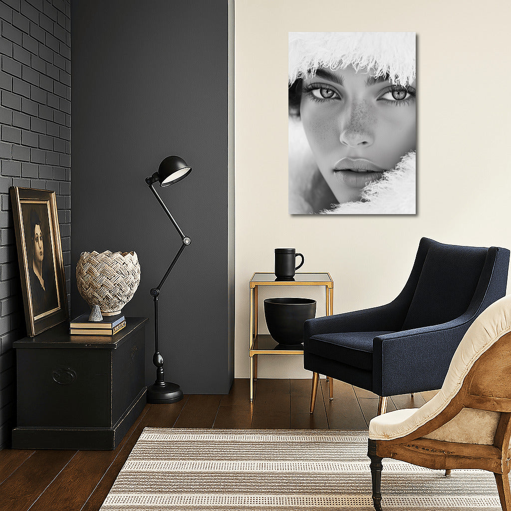 Elegant painting: a charming look among snow-white textures. Wall art that fills your space with mysticism. See more from the collection: Black and White Art