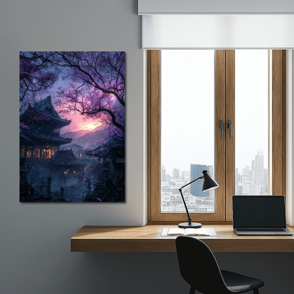 Immerse yourself in the mystical atmosphere with the Evening Kyoto poster - the perfect wall art for true connoisseurs of Japanese aesthetics. See more from the collection: Cityscapes & Skylines Art