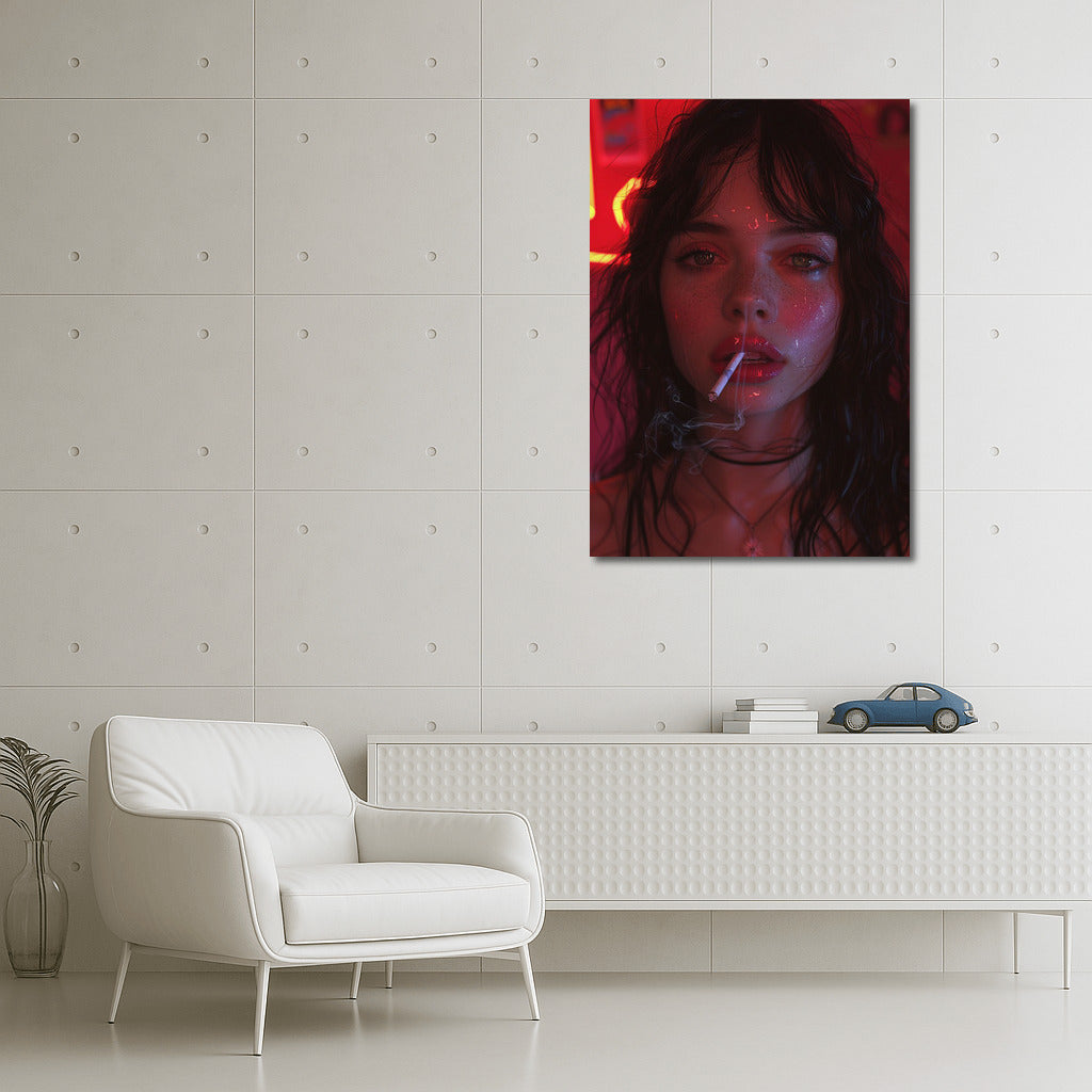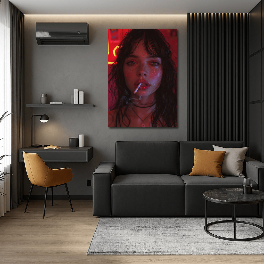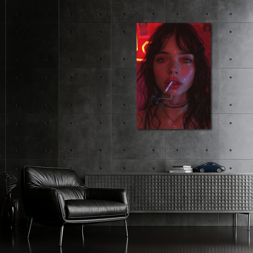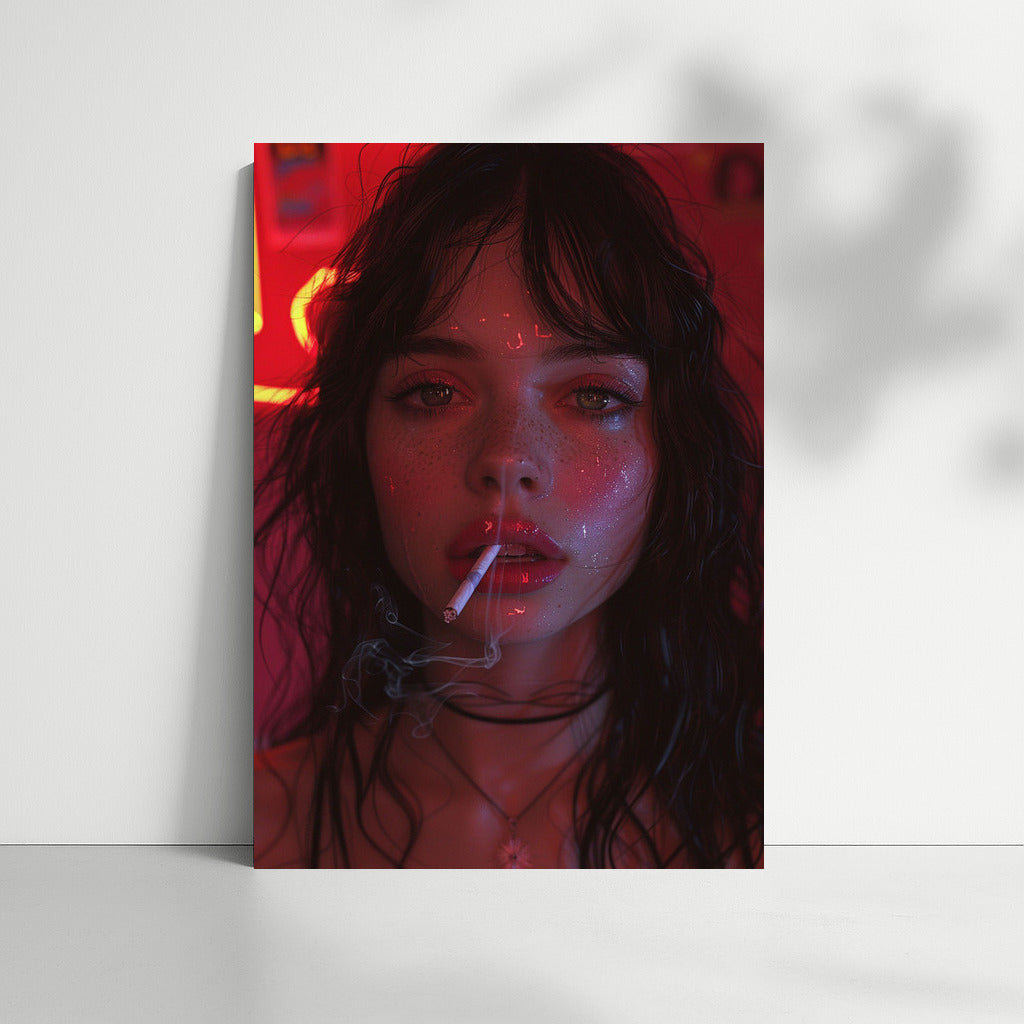Mystical glow and captivating gaze: this poster captures the enigmatic allure of a long-haired brunette. Perfect for modern wall art. See more from the collection: Wall Art with Women